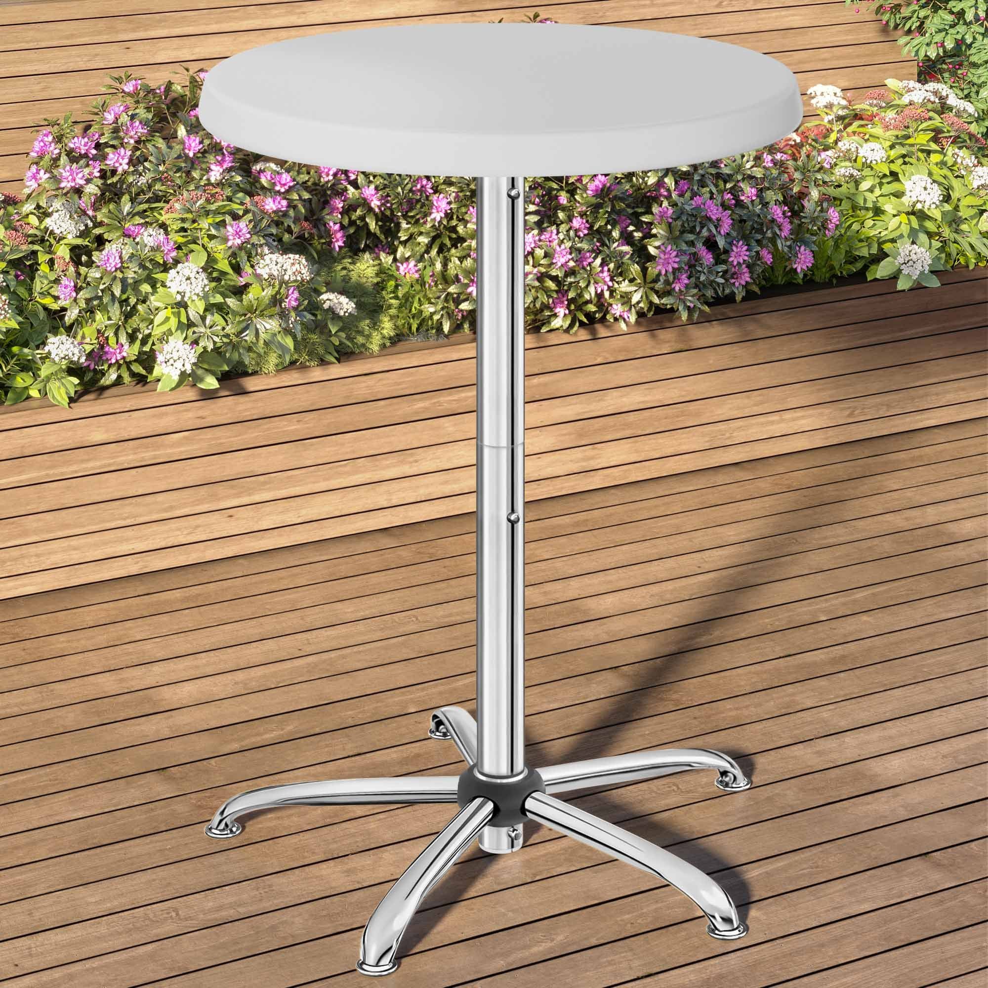 "Mio-Tisch: Kompakt, stabil und ideal für Veranstaltungen " Der Mio-Tisch ist ein vielseitiger und praktischer Begleiter für Veranstaltungen. Mit einem Durchmesser von 68 cm bietet er ausreichend Platz für verschiedene Aktivitäten. Durch seine Höhenverstellbarkeit von 76 cm bis 110 cm ist er flexibel anpassbar. Dank seiner Klappfunktion ist der Partytisch besonders platzsparend und leicht zu transportieren . Egal ob drinnen oder draußen, der weiße Mio-Tisch erweist sich als langlebig und witterungsbeständig. Die stabile Konstruktion und das standhafte Fußgestell ermöglichen eine zuverlässige Nutzung bei verschiedenen Veranstaltungen. Ob für Feiern, Events oder den täglichen Gebrauch, der Mio-Tisch überzeugt mit seiner Kombination aus Funktionalität und stilvollem Design. Ein unverzichtbares Möbelstück für eine gelungene Veranstaltung! Eigenschaften: * Klappfunktion * Geringes Tragegewicht * Witterungsbeständig & langlebig * Leicht zu reinigen * Kompakte Bauweise