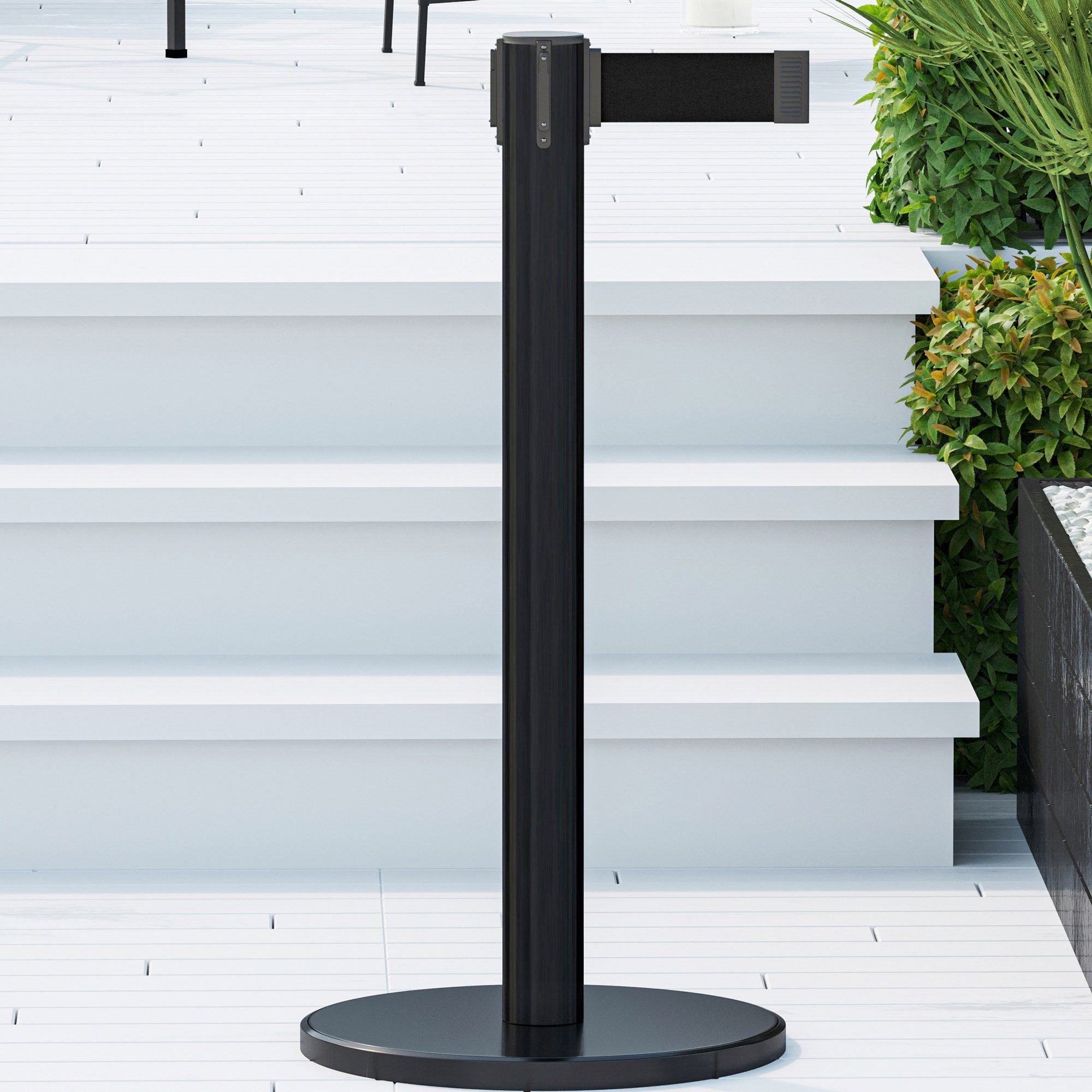 patentierten Gurtband-Systems , das den Rücklauf der Gurte verlangsamt, die Verletzungsgefahr reduziert und somit Ihre Besucher schützt, gelten die flexiblen Gurtständer mit Zugband zu den sichersten auf dem