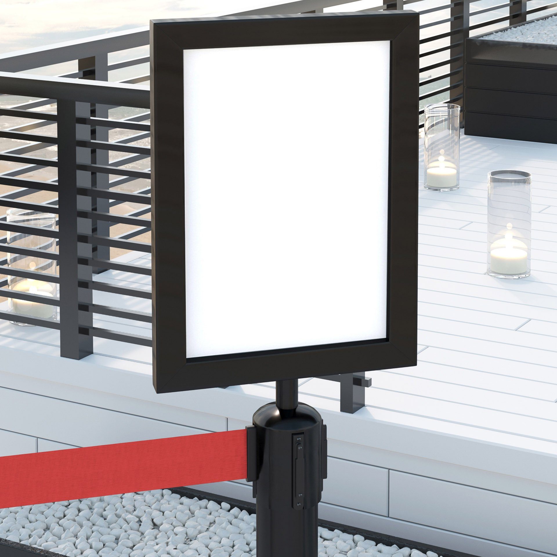 Der Rahmen ist leicht zu positionieren und mit Einlegern in der Размер DIN A4 zu bestücken. Das Aufsatzschild in Kombination mit dem Gurtbandsys