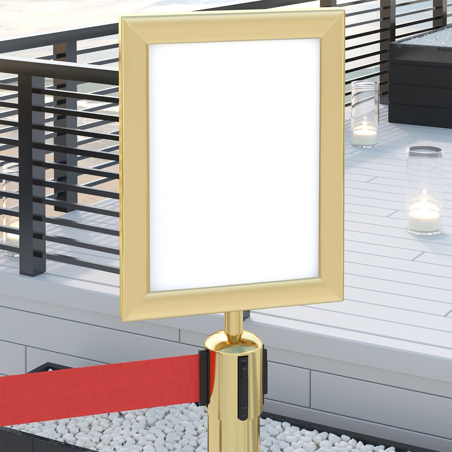 Der Rahmen ist leicht zu positionieren und mit Einlegern in der Размер DIN A4 zu bestücken. Das Aufsatzschild in Kombination mit dem Gurtbandsys