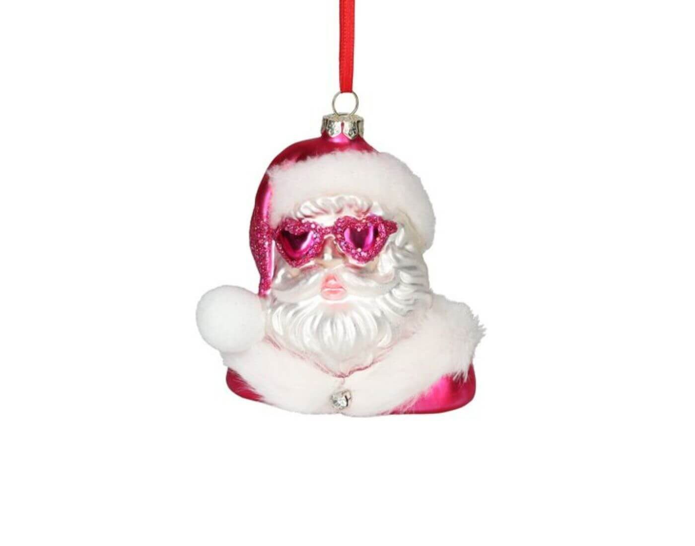 Christbaumschmuck Hänger Santa mit Herzbrille, pink