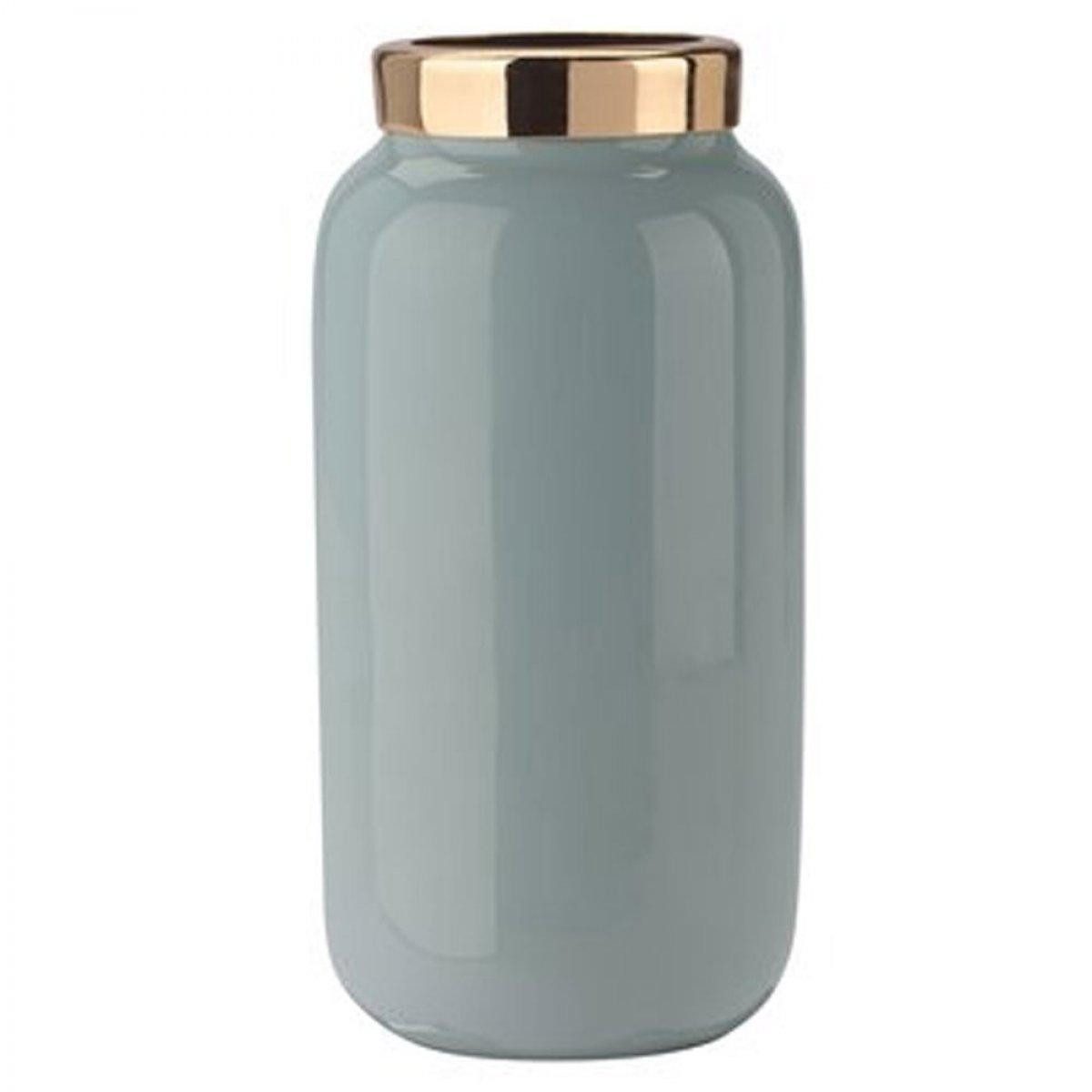 Giftcompany Dekovase Minivase Saigon mit Metallring Pastellblau Gold (9,5cm)