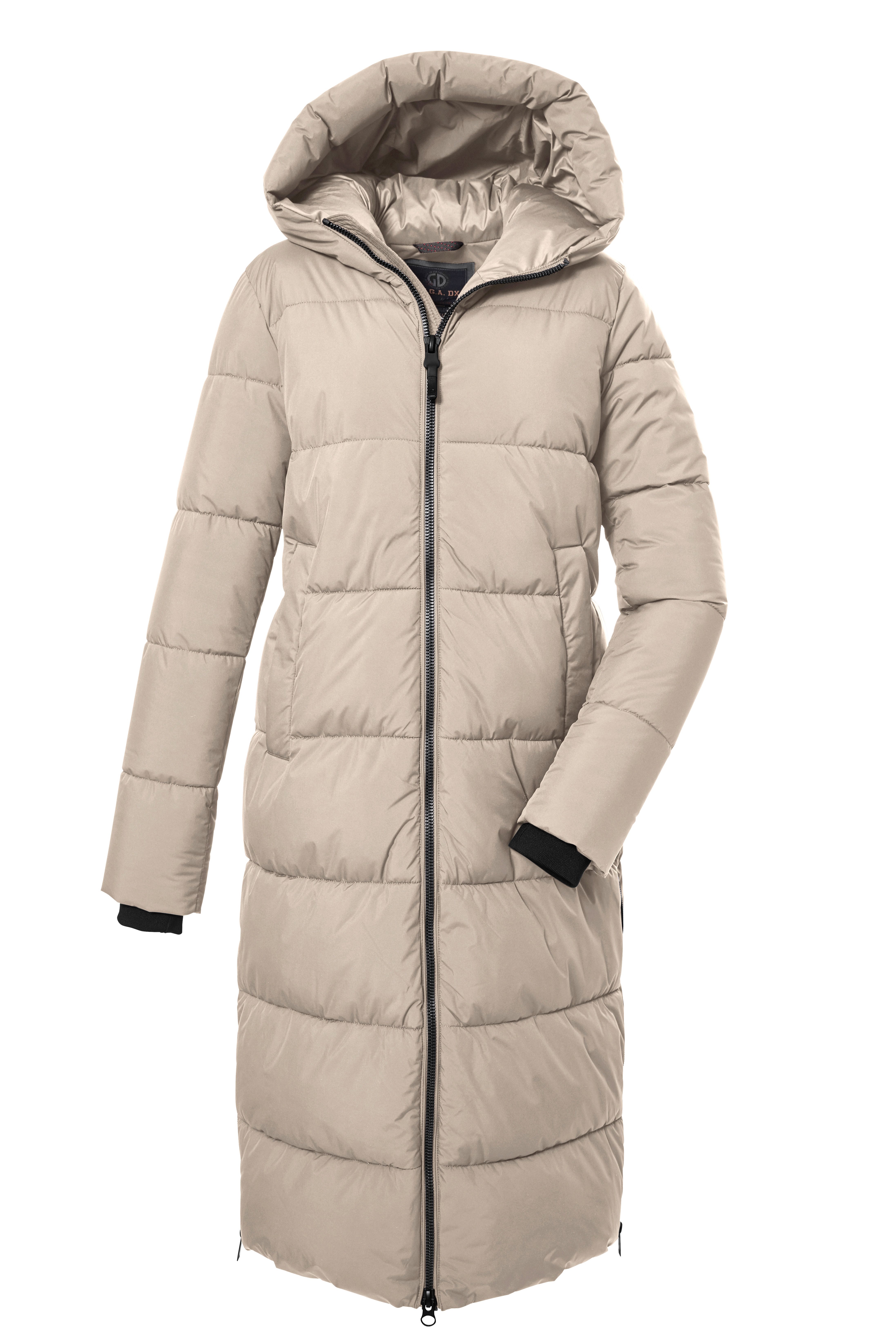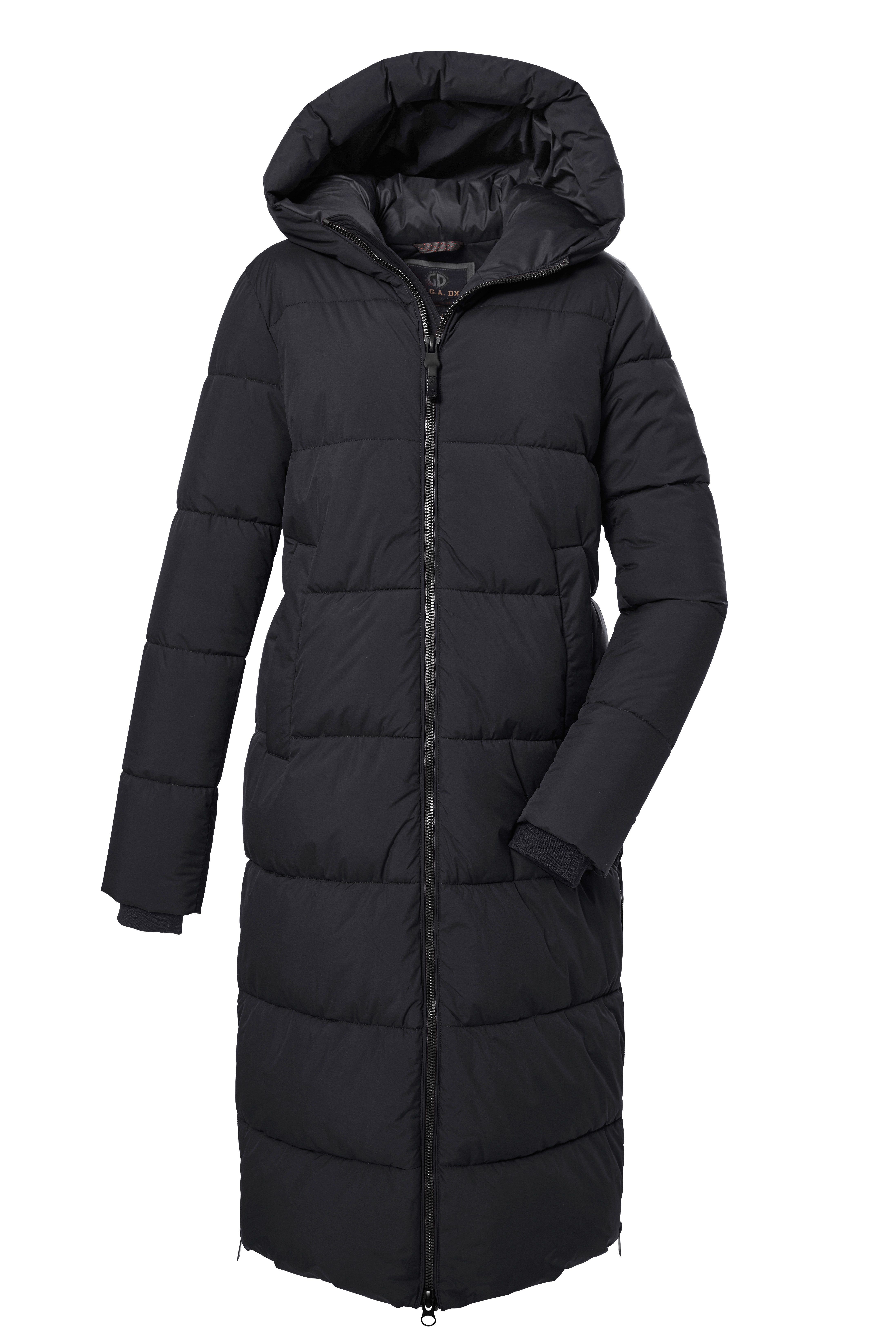 Mit dem Funktionsmantel in Daunenoptik von G.I.G.A. DX liegen Sie voll im Trend. Die lange Passform und die große Kapuze verleihen ihm einen lässigen Look. Der Steppmantel ist wasserabweisend und winddicht mit einer 8.000 mm Wassersäule und gleichzeitig atmungsaktiv. Die Strickbündchen an den Ärmelabschlüssen sind besonders bequem. Der 2-Wege-Reißverschluss und seitliche Reißverschlüsse sorgen für viel Bewegungsfreiheit. Der Kinnschutz verhindert ein Einklemmen der Haut. Zwei Eingrifftaschen und eine Innentasche bieten genügend Stauraum. killtec liegt es besonders am Herzen, die Kollektionen nachhaltiger und zukunftsfähiger zu machen. So setzt killtec verstärkt auf verantwortungsbewusstere Herstellungsverfahren. Dieser Mantel ist daher PFC-frei.