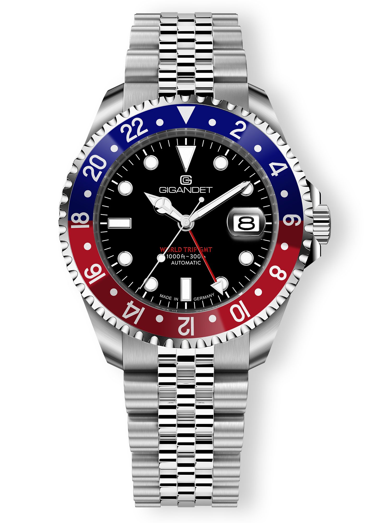 Besondere Merkmale | GMT, 2-farbige Lünette, Datumsanzeige, verschraubtes Band |