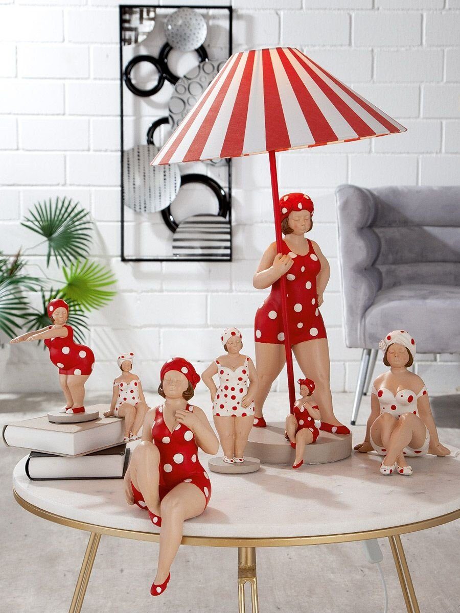 Das 13-teilige Меню "Becky" von GILDE ist eine wunderbare Ergänzung für jeden, der Wert auf Qualität und Design legt. Dieses Меню enthält eine Tischlampe und mehrere Figuren, die alle in einem ansprechenden rot-weißen Farbschema gehalten sind und die Badenixe Becky darstellen.