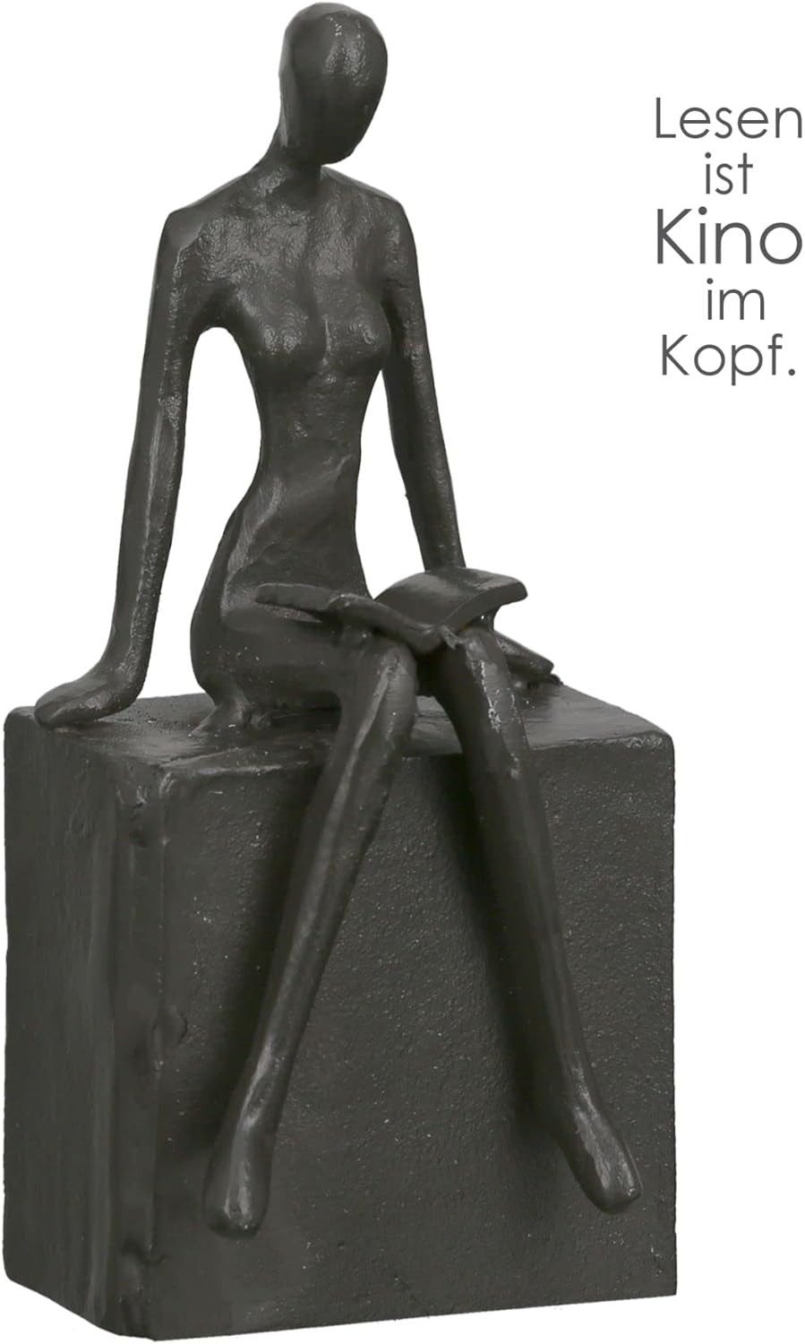 Lässig und entspannt, bei einem guten Buch, möchte jeder die stressige Zeit hinter sich lassen. Nicht nur Dekoration, sondern auch Aussage in seiner Darstellung, das ist eine gelungene Kombination. Für jeden Betrachter hat sie seine eigene Message. Ein silberfarbenes Antik-Finish im Struktur-Design lässt diese Figur zu einem interessanten Deko-Objekt werden. Platziert auf einem Regal, einem Beistell-Tisch im Wohn- und Ess-Zimmer-Bereich oder auch auf einem Schreibtisch im Büro, diese Skulptur macht auf jeden Fall eine gute Figur. Beschenken Sie einen lieben Freund, Freundin oder Verwandte und Bekannte. Sie ist in jedem Fall ein willkommenes Geschenk für sie oder ihn.