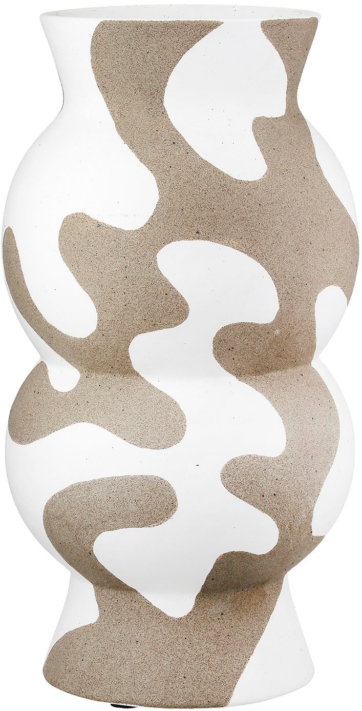 Die Vase Areno ist ein stilvolles und formschönes Blumengefäß, das sich perfekt in jedes Interieur einfügt. Dieses runde Gefäß aus hochwertiger Keramik besticht durch seine elegante graue und weiße Farbgebung. Mit einer Höhe von 35 cm und einem Durchmesser von 18 cm bietet es ausreichend Platz für Ihre Lieblingsblumen oder Kunstblumen. Der Innendurchmesser von 13 cm ermöglicht es, auch größere Blumenarrangements stilvoll zu präsentieren. Dank der wasserdichten Eigenschaften des Behälters können Sie sowohl frische Blumen als auch Kunstblumen sicher und ohne Bedenken arrangieren. Die Schaumstofffüße sorgen für Zirkulation im Bodenbereich und dass das Gefäß stabil steht und Ihre Möbel vor Kratzern schützt. Ob als dekoratives Element auf dem Esstisch oder als Blickfang im Wohnzimmer, die Vase Areno ist das ideale Kunstblumengefäß für jeden Raum.