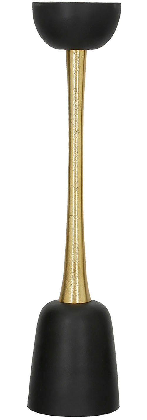 Der Kerzenleuchter Dora ist aus dem spezifischen Material Aluminium und speziell für Stumpenkerze geeignet. Der Farbmix in Schwarz und Gold harmoniert perfekt miteinander in der Form dieses Kerzenständers. Ob festlich oder prunkvoll, mit glamourösen Windlichtern und Kerzenhaltern kommen Ihre Deko-Settings garantiert groß raus. Ein geometrisches Design oder eine simple Linienführung beeindrucken jeweils mit besonderem Chic. Anspruchsvolle Details runden die Optik der Objekte ab und verleihen ihnen eine einzigartige Strahlkraft mit einer Kerze Ihrer Wahl. Mit handwerklichem Geschick wird die Schönheit der Kerzenhalter herausgearbeitet. Dank individueller Techniken wie Färben oder Polieren, entsteht ein Dekorationsstück mit besonderen charakteristischen Merkmalen.