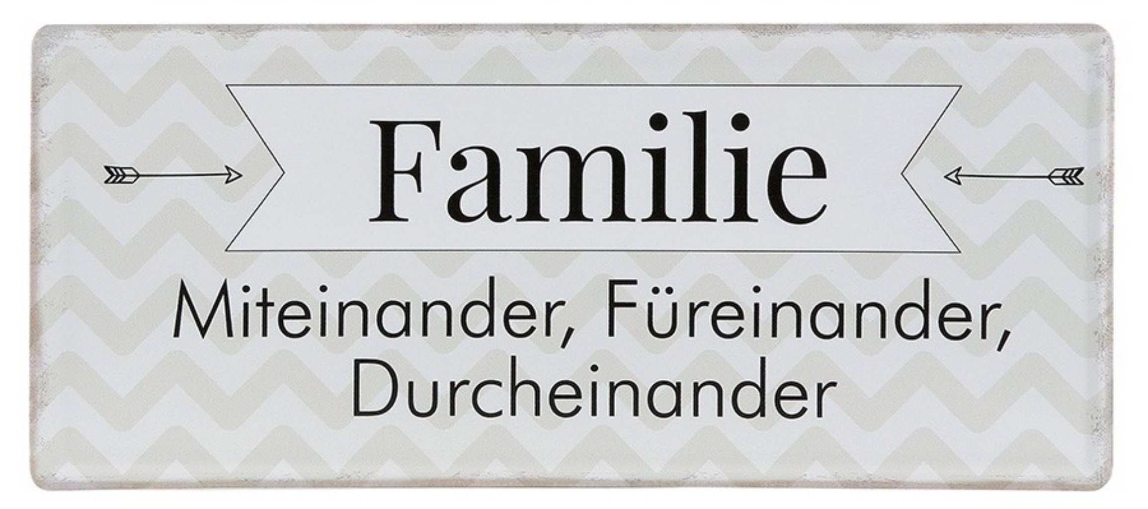 Schönes Familien Metallschild, Dekoschild, top angesagt, im wohnlichen Stil. METALLDRUCK, kein Aufkleber. Modell: FAMILIE MITEINANDER, FÜREINANDER, DURCHEINANDER.