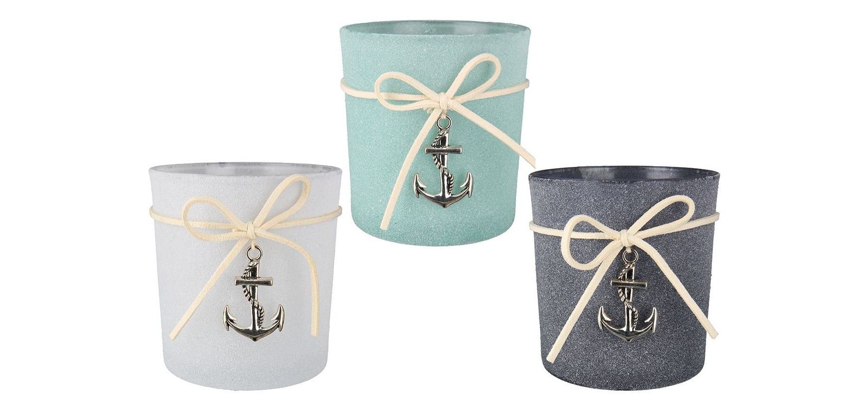 Das 3teilige Windlicht-Set Ancora im maritimen LOOK aus der Boltze Home Collection ist ein schönes Wohnaccessoires für Ihr Zuhause. Die Windlichter aus Glas passen ideal in dein gemütliche und modernes Zuhause. Diese Windlichter sind für Teelichter geeignet und werden in drei verschiedenen Farben ausgeliefert. Die Auslieferung erfolgt ohne Kerze. Leichte Abweichungen in Form und Farbe sind möglich und unterstreichen die Individualität dieses Produkts. Ein Licht, welches Atmosphäre schafft und zum Träumen anregt. Auch ideal für den Garten geeignet! Ein Geschenk, welches immer wieder ein Leuchten und das nicht nur in die Gesichter der Menschen zaubert , aber natürlich auch um sich selbst zu verwöhnen und beschenken. Eigenschaft für Teelichter Material Glas Kategorie Windlicht Farbe Verfügbarkeit Verfügbar Höhe 8 cm Durchmesser 7,5 cm EAN 4063387525258