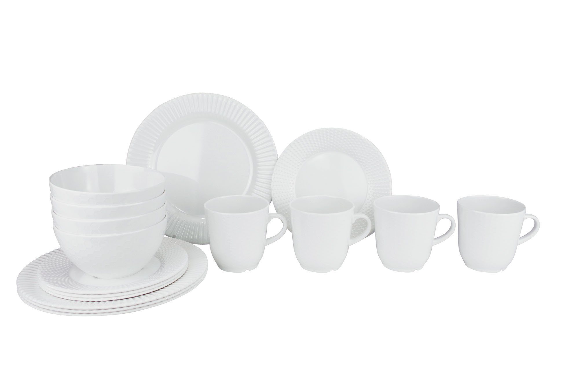 Dieses Geschirrset ist besonders strukturiert und in klassischem Weiß gehalten.