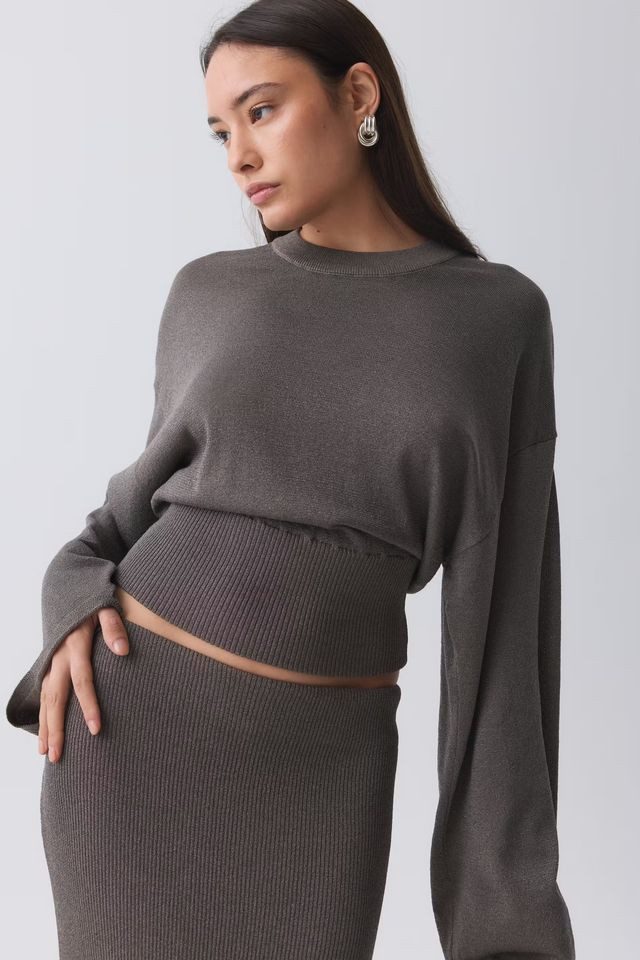 Der glänzende Damen Strickpullover von Gina Tricot besticht durch sein edles Material aus Metallfasern und einen modischen Rundhalsausschnitt. Der schwarze Pullover verfügt über trendige Trompetenärmel mit breiten, gerippten Manschetten und eine figurbetonte Taille mit Drop-Schulter. Die normale Passform sorgt für hohen Tragekomfort und vielseitige Kombinationsmöglichkeiten. Ideal für Casual- und Business-Looks.