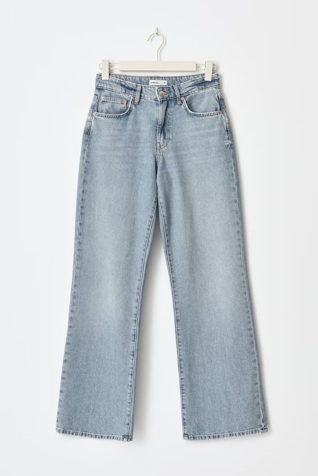 Diese weit geschnittene Damenjeans von Gina Tricot kombiniert modernen Look mit klassischem 5-Pocket-Design. Der lässige Fit und die mittlere Bundhöhe machen sie zur perfekten Alltagsjeans – ideal für entspannte Freizeit-Styles oder trendige Streetwear-Looks.