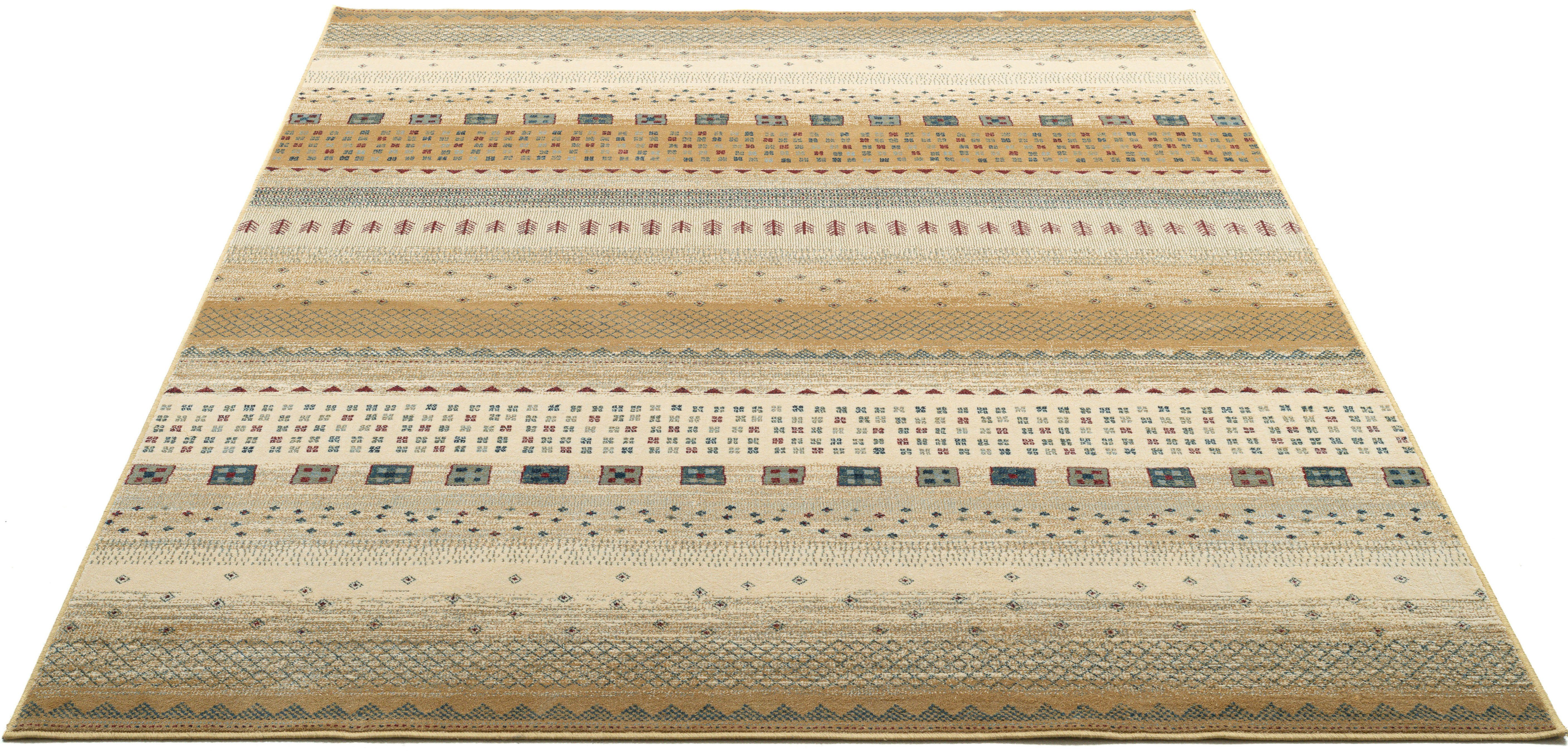 Maschinell gewebter Teppich | Beim Auslegen des Teppichs kann durch das Aufrollen der Teppich etwas wellig erscheinen, dieses legt sich nach kurzer Zeit aus. Sie können dieses etwas beschleunigen wenn Sie den Artikel in gegenläufiger Richtung nochmals aufwickeln. |
