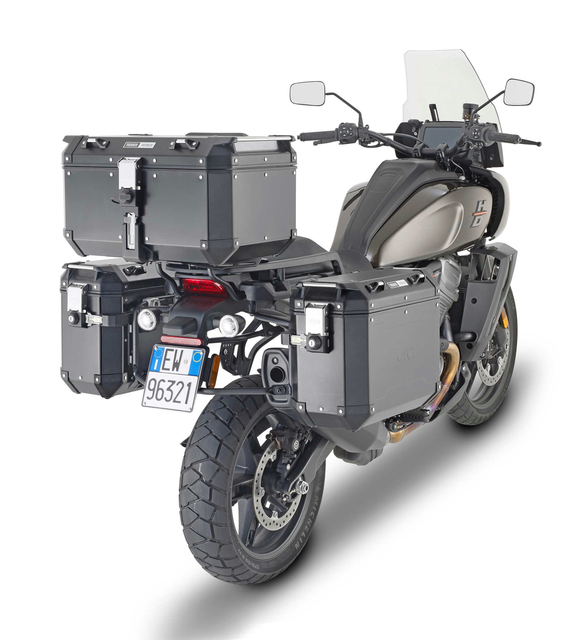 Dieser hochwertige Seitenkofferträger ermöglicht die sichere Befestigung von GIVI Trekker Outback Seitenkoffern an deiner Harley Davidson Pan America 1250 (2021).