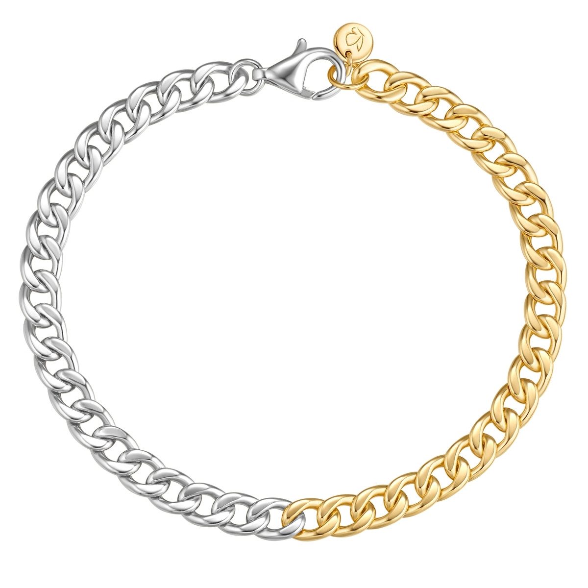 Verleihe deinem Look eine stilvolle Note mit diesem Armband von Glanzstücke München. Das Panzerarmband aus hochwertigem 925er Sterling Silber überzeugt durch seine detailreiche Verarbeitung und die zusätzliche Veredelung: Die angesagte Bicolor-Optik bietet einerseits das moderne Silber sowie ein edles Gelbgold-Finish dank 14-karätiger Vergoldung. Das Schmuckstück bietet mit dem sicheren Karabinerverschluss zuverlässigen Halt im Alltag. Das dezente Design macht das Armband zu einem vielseitigen Begleiter – sowohl als elegantes Einzelstück als auch in Kombination mit weiteren Lieblingsschmuckstücken. Spüre den feinen Glanz und genieße ein Accessoire, das deine Persönlichkeit dezent unterstreicht und jedem Outfit das gewisse Etwas verleiht.