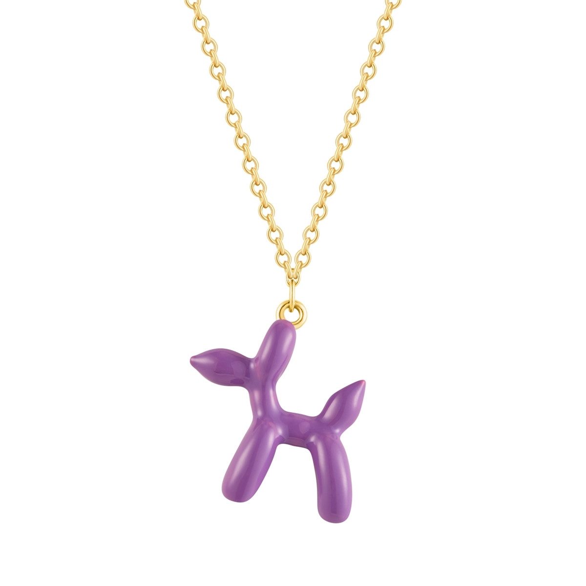 LIEBEVOLLES DETAIL: Damen-Kette mit violettem Ballon-Hund-Anhänger aus Emaille für stilbewusste Fashionistas