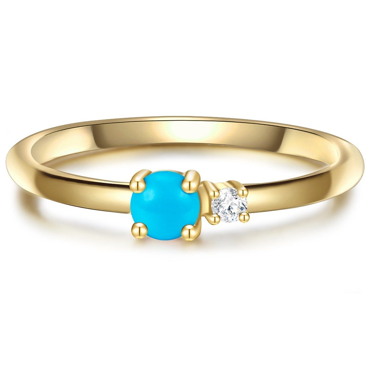 MULTISTEIN-RING: Gefertigt aus gelbvergoldetem Sterling Silber, leuchtendem Türkis (rek.) und funkelndem Zirkonia