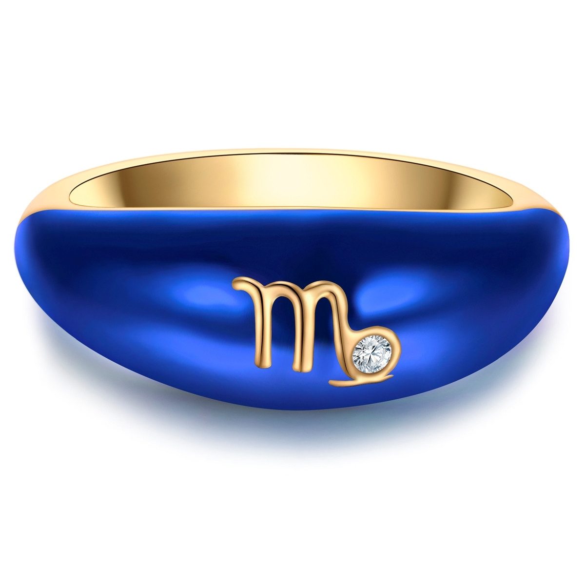 GLANZVOLLER STERNZEICHEN-RING: Eleganter Damenring mit Jungfrau-Motiv, facettiertem Zirkonia und strahlender Emaillierung für einen einzigartigen Look
