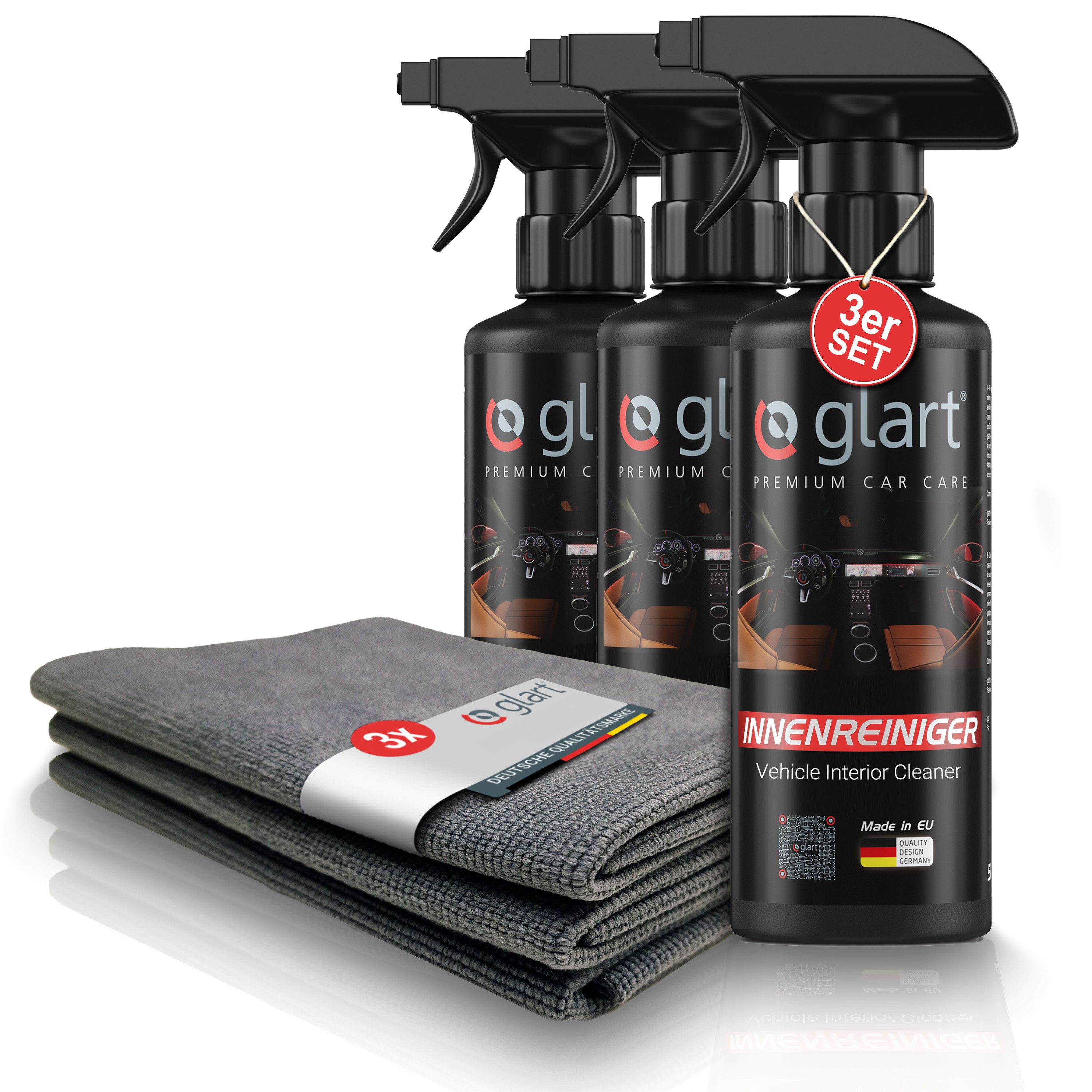 Glart® 3x Auto Innenreiniger Set 500 ml mit Mikrofasertüchern - Perfekte Reinigung & Frische für PKW InnenräumeMit dem Glart® 3x Auto Innenreiniger Set, bestehend aus 500 ml Reinigungsflüssigkeit und 3 hochwertigen Mikrofasertüchern, erreichen Sie makellose Sauberkeit und Frische im gesamten Fahrzeuginnenraum. Dieses Set ist speziell für die Reinigung und Pflege von Cockpit, Polstern, Leder und weiteren Oberflächen im Auto entwickelt worden, um hartnäckigen Schmutz und Flecken effektiv zu entfernen. Die einfache Anwendung ermöglicht ein schnelles und effizientes Reinigungserlebnis, ohne das Material zu beschädigen.Erleben Sie die ultimative Pflege für Ihren Fahrzeuginnenraum mit dem Glart® 3x Auto Innenreiniger Set. Es bietet nicht nur eine effektive und schonende Reinigung, sondern auch einen langanhaltenden Schutz für alle behandelten Oberflächen. Vertrauen Sie auf die Qualität eines von Profis entwickelten Produkts und genießen Sie das Gefühl eines neuwertigen Autos, jedes Mal, wenn Sie einsteigen.Entdecken Sie das Glart® Auto Innenreiniger Set für makellose Sauberkeit. Einfache Anwendung, frischer Duft & umweltfreundlich. Ideal für Autoliebhaber.