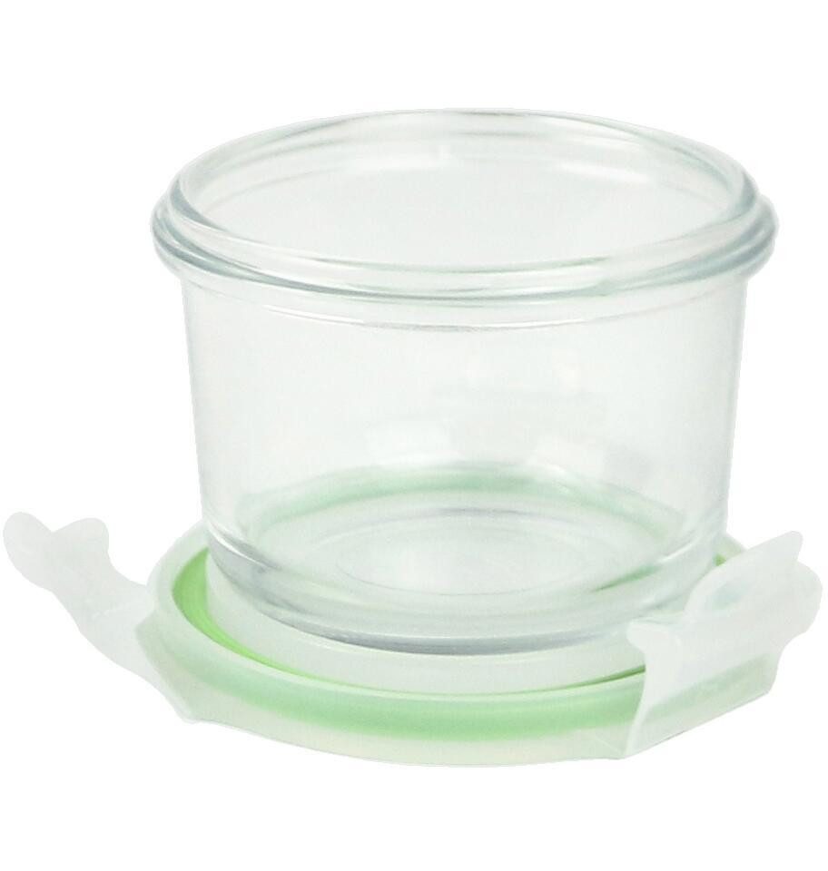 Glasslock Frischhaltebehälter rund (165 ml / 6,4 cm) aus temperiertem Glas mit luftdichtem Silikonverschluss. BPA-frei und umweltfreundlich. Mikrowellengeeignet und spülmaschinenfest. Ideal für die Lebensmittelaufbewahrung. Temperaturresistent von -20 bis 120 Grad Celsius. Leicht zu reinigen und stapelbar. Maße: Durchmesser 7 cm.