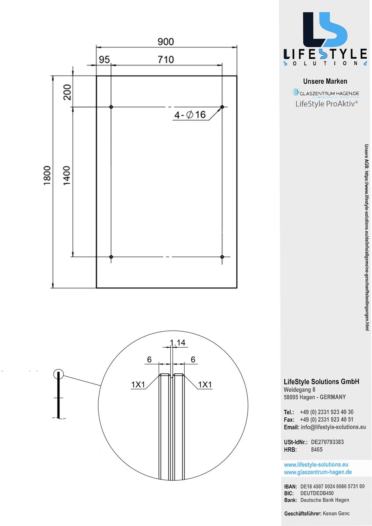 • Robustes VSG-Glas: Die Verwendung von je zwei 6 mm dickem Verbundsicherheitsglas (VSG) mit einer PVB-Folie sorgt für erhöhte Sicherheit. Das Glas bleibt im Falle eines Bruchs zusammen, wodurch Verletzungsgefahr durch Glassplitter minimiert wird.
