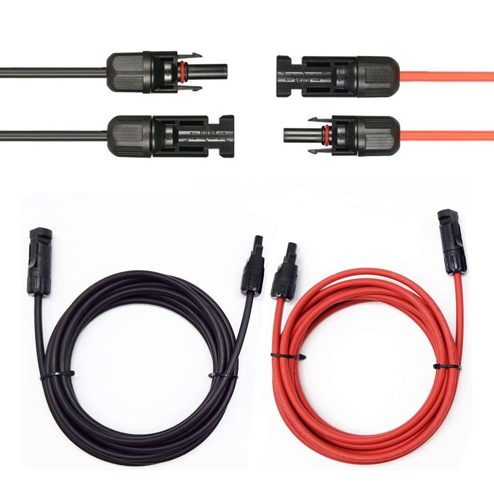 Solaranschlüsse: 6mm² Solar-Verlängerungskabel bestehen aus verzinnten 1800V Kupfer-Solarkabeln mit 1,8 kV 55A IP67 PV-Steckern aus hartem PPO-Kunststoff. Beide Enden sind männlich und weiblich (2 rot + 2 schwarz).