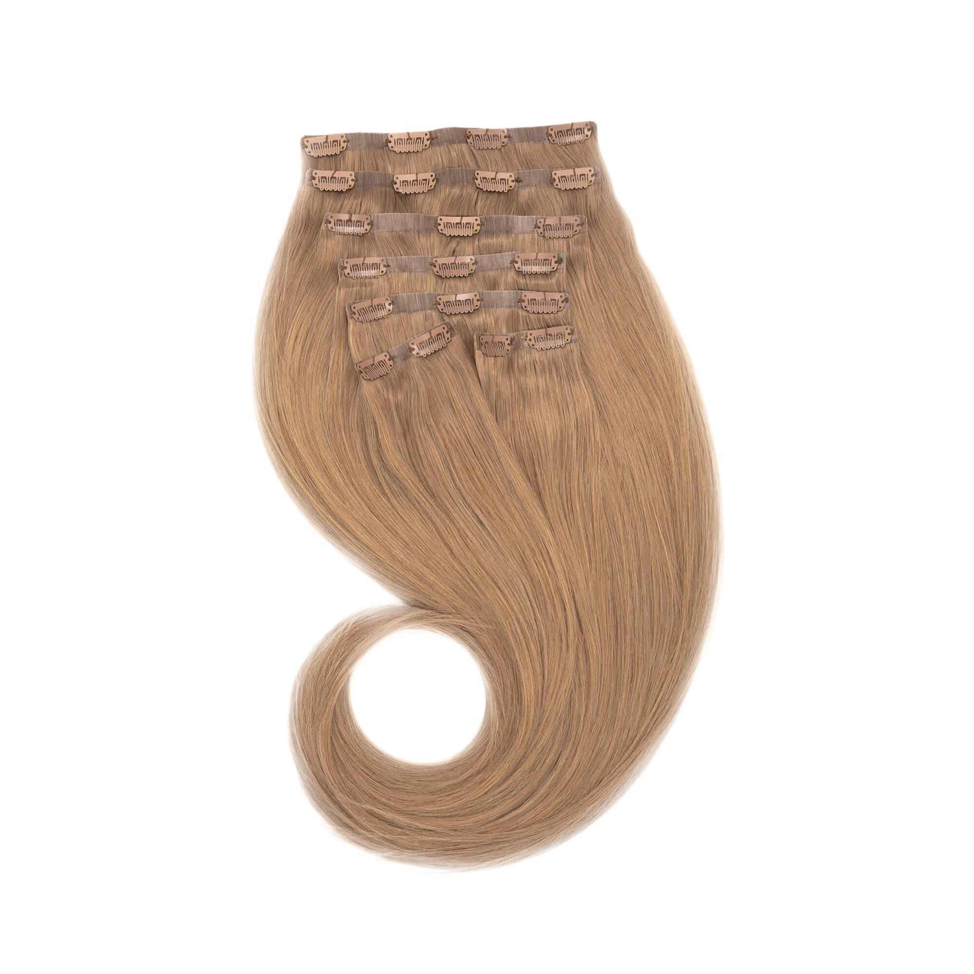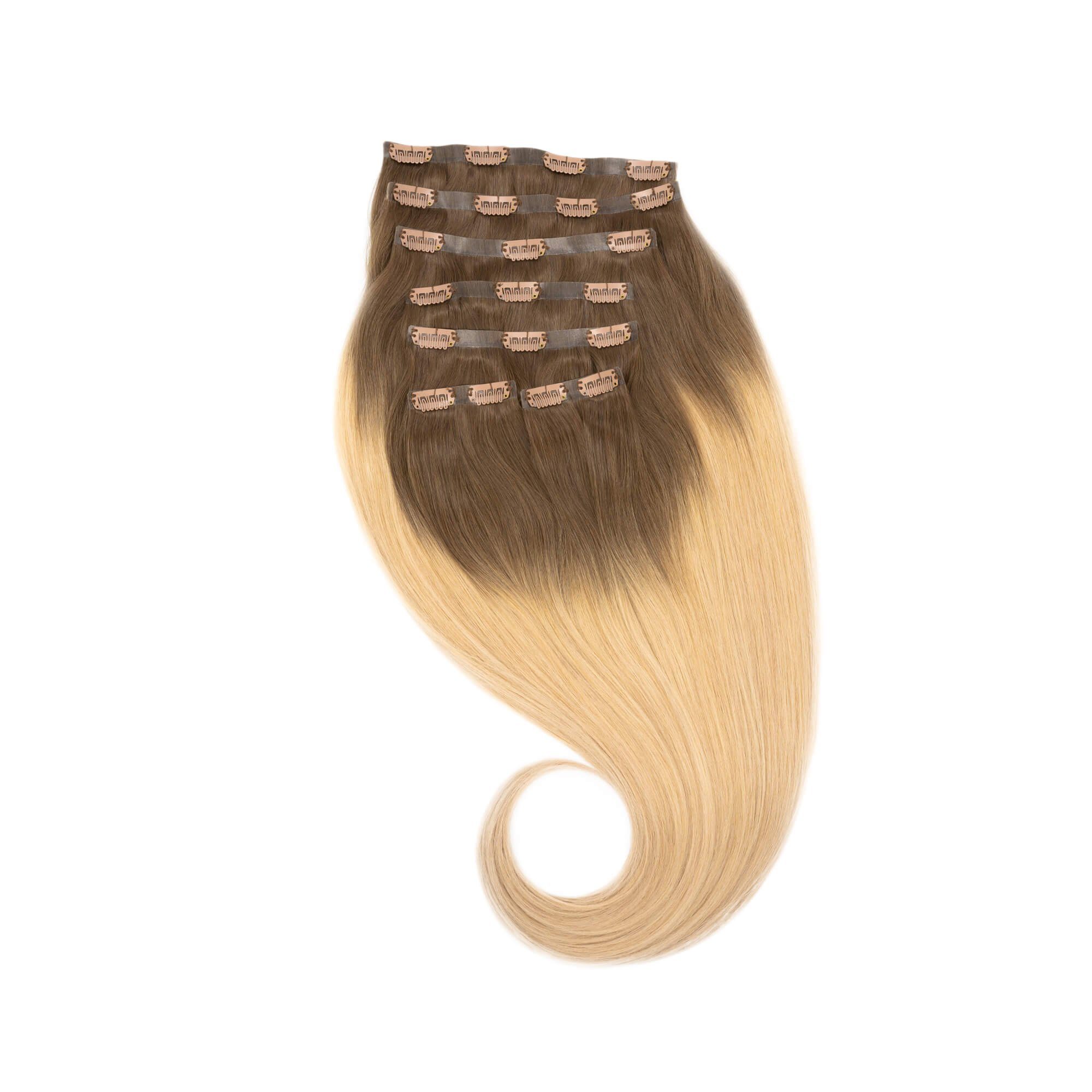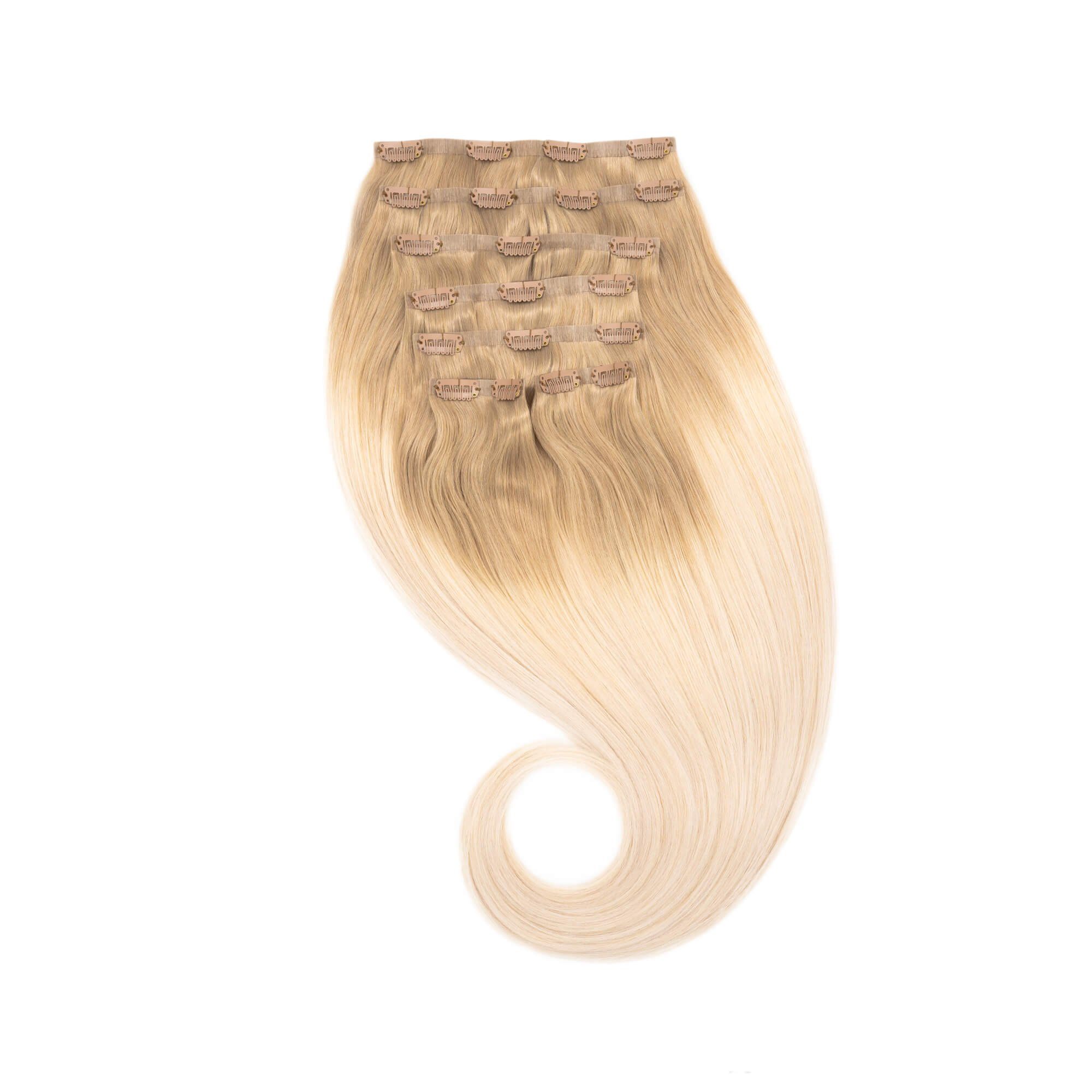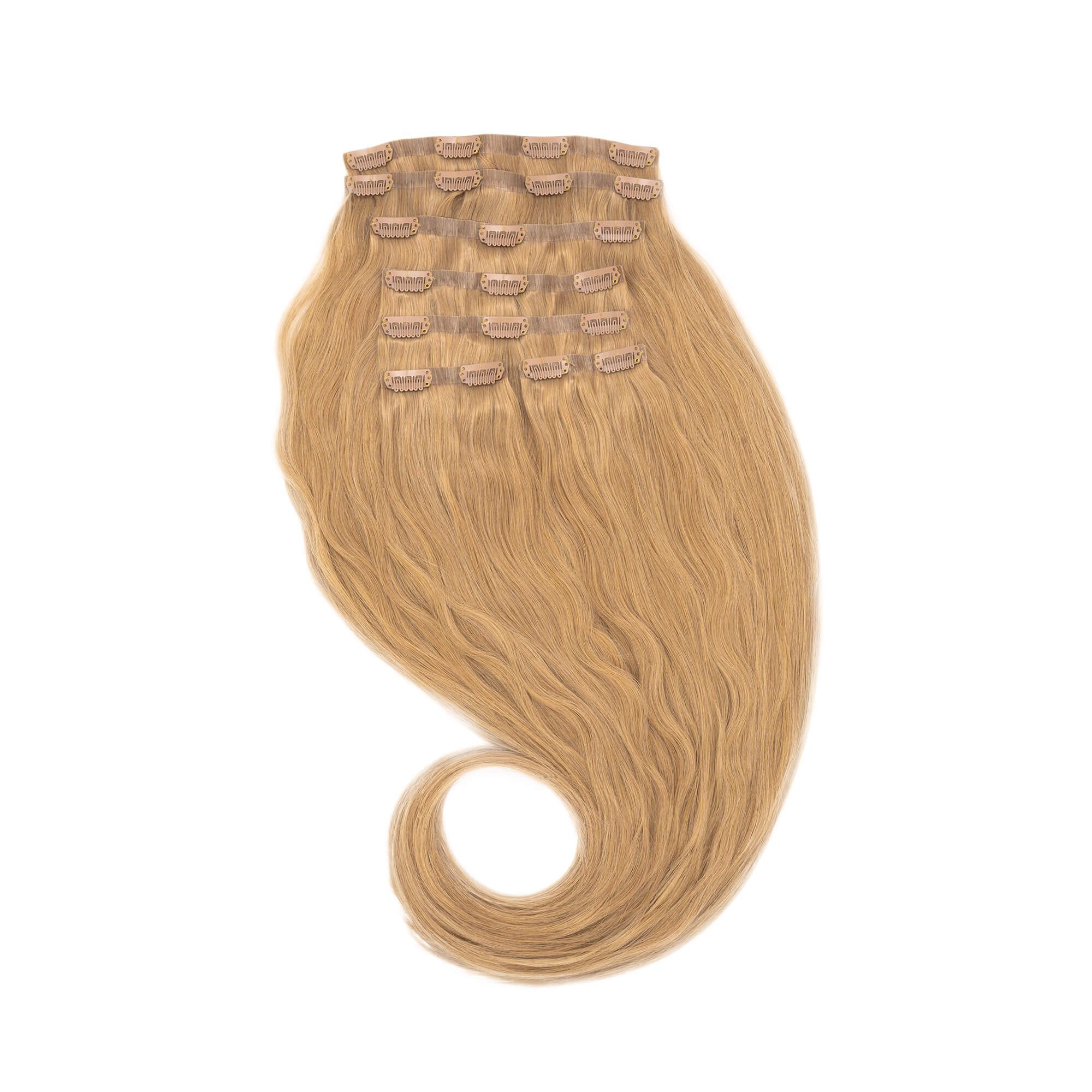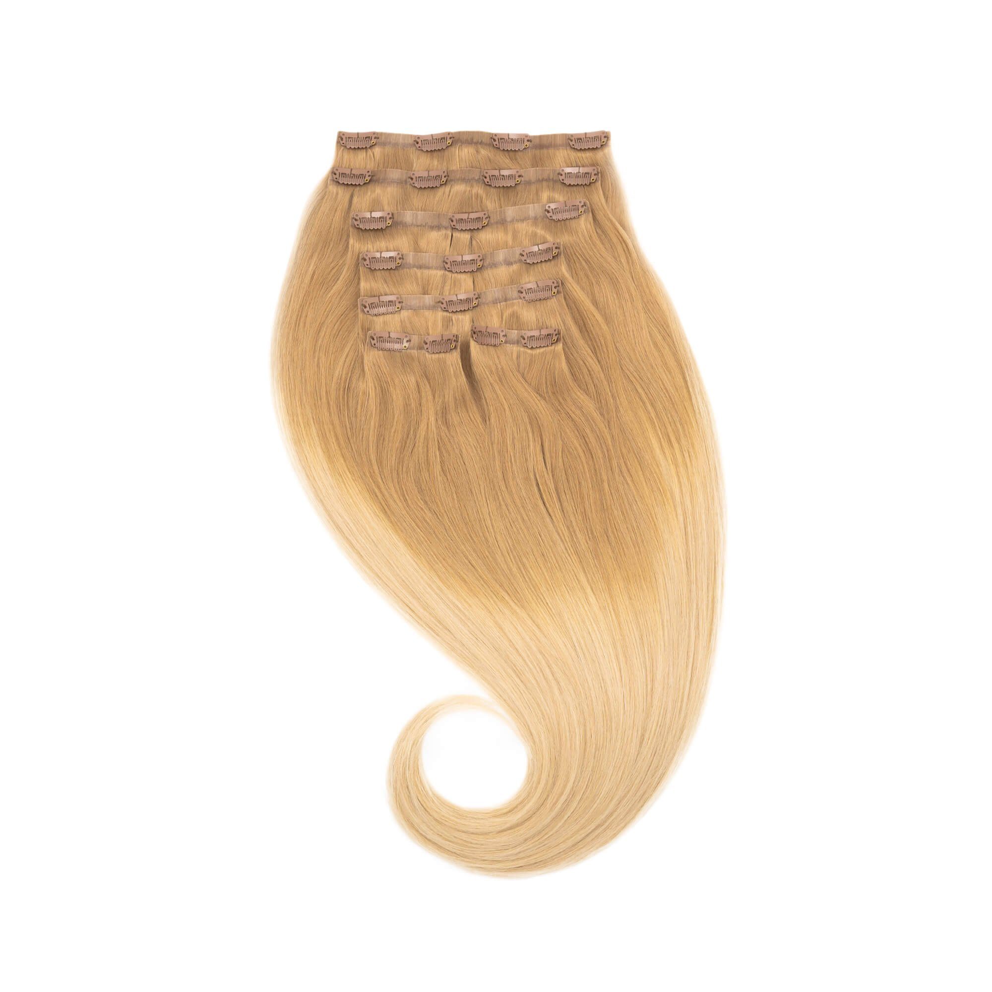 Hollywood Extensions / Nahtlose Clip-in-Extensions. Jetzt mit noch mehr Haarvolumen! Dadurch, dass keine Fäden zum Halten der Haare benutzt werden enthält eine Tresse fast doppelt so viel Haar wie eine Vernähte, das Haarteil liegt flach an und verliert keine einzelnen Haare. Diese Clip-in-Extensions bieten wir in Vier Длинаn an. Mit diesem luxuriösen Volumen reicht ein Set auch bei dichtem Eigenhaar für die komplette Haarverlängerung. Die Extensions haben keine Unterlängen und sind somit voll bis in die Spitzen.