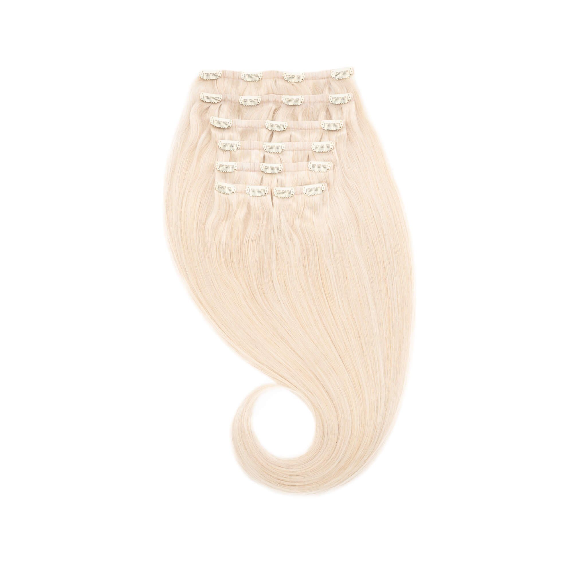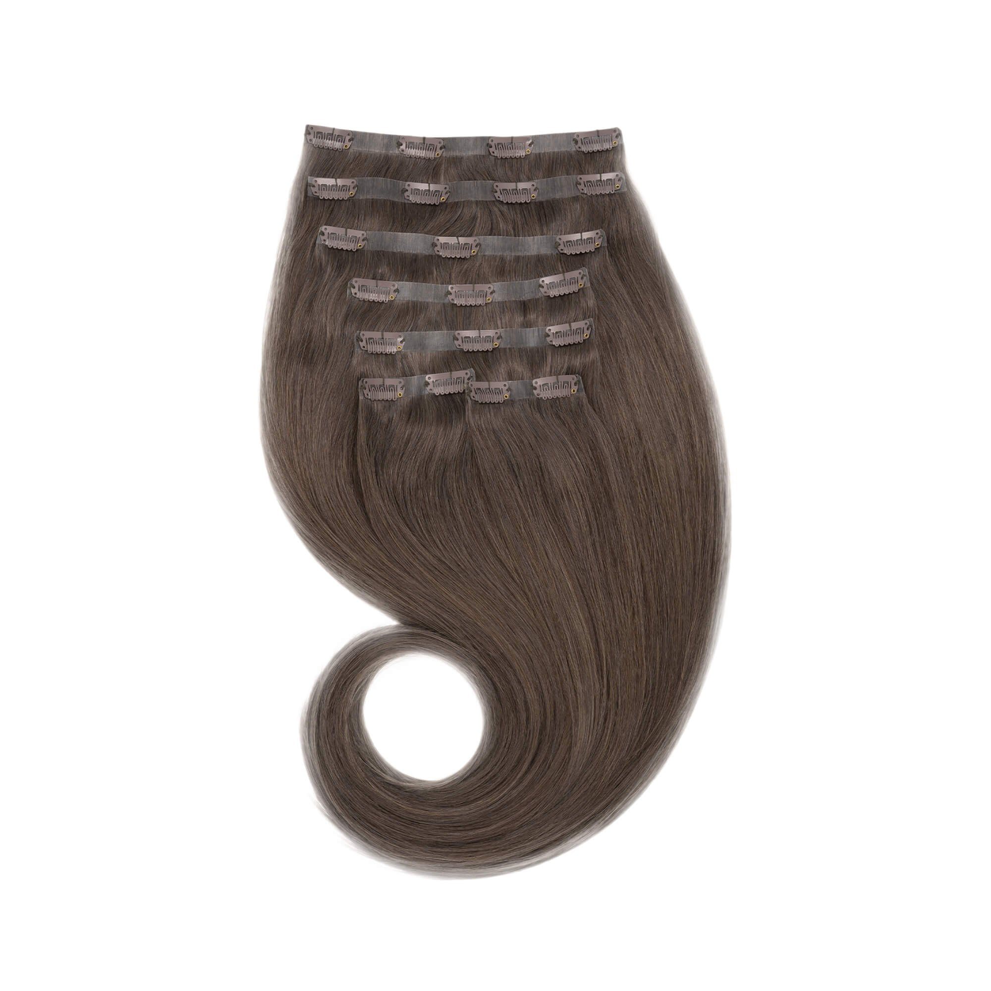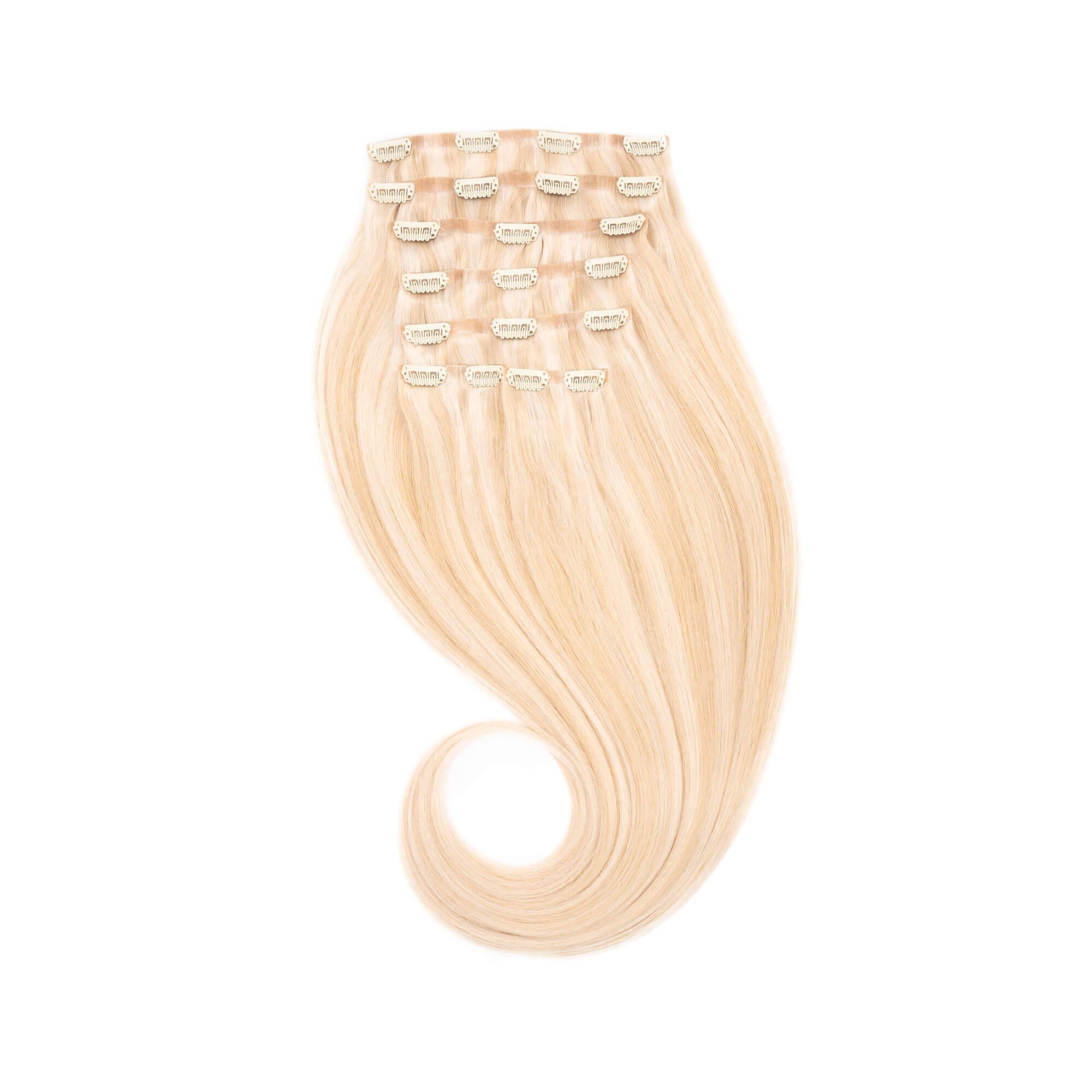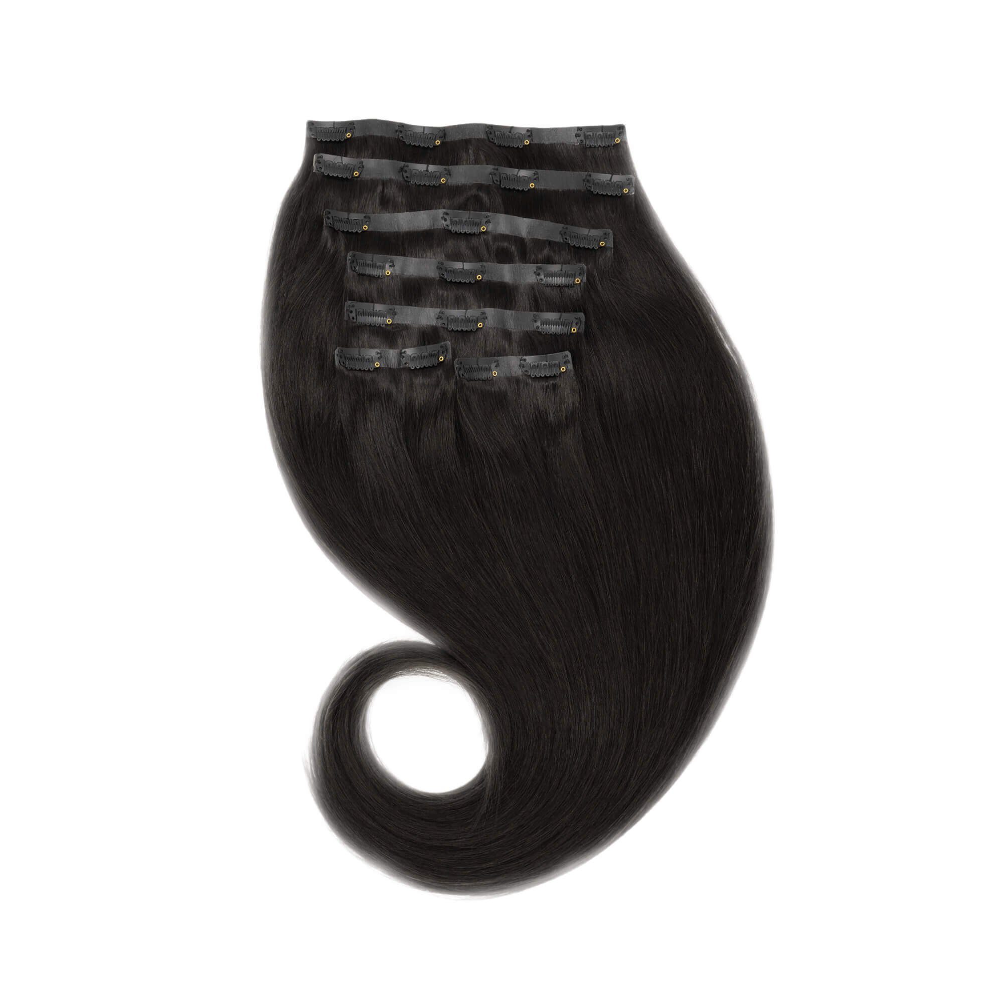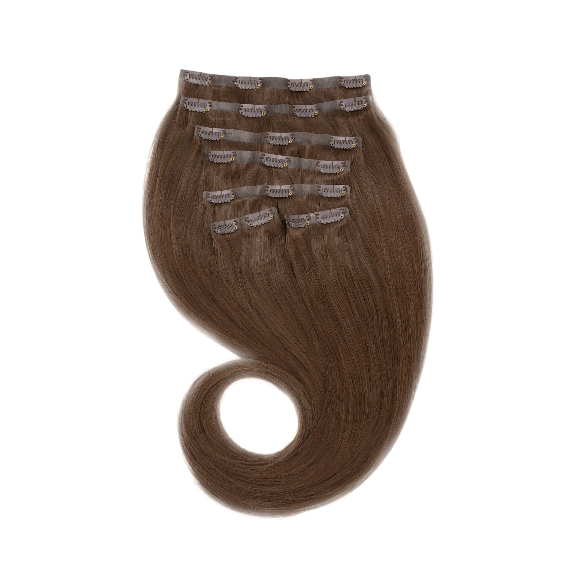 Hollywood Extensions / Nahtlose Clip-in-Extensions. Jetzt mit noch mehr Haarvolumen! Dadurch, dass keine Fäden zum Halten der Haare benutzt werden enthält eine Tresse fast doppelt so viel Haar wie eine Vernähte, das Haarteil liegt flach an und verliert keine einzelnen Haare. Diese Clip-in-Extensions bieten wir in Vier Длинаn an. Mit diesem luxuriösen Volumen reicht ein Set auch bei dichtem Eigenhaar für die komplette Haarverlängerung. Die Extensions haben keine Unterlängen und sind somit voll bis in die Spitzen.