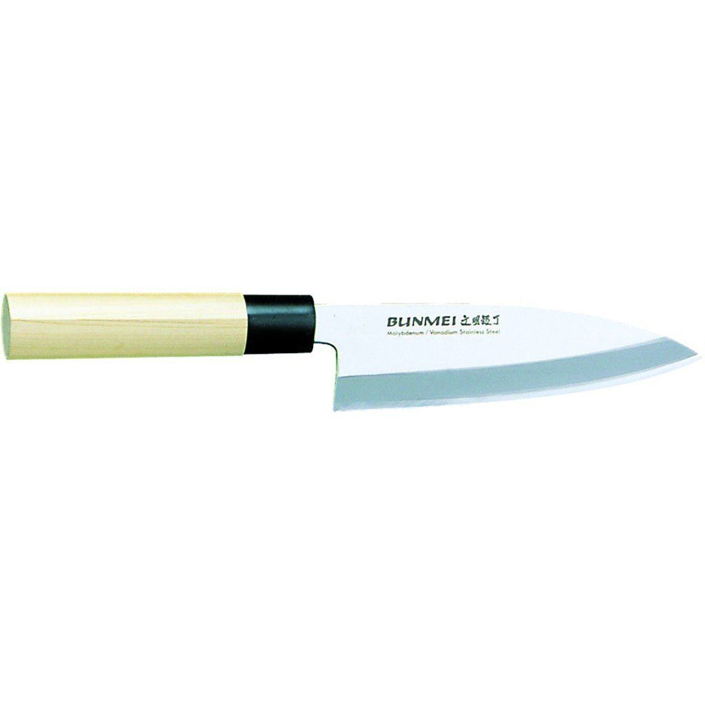 Das 1801-135 Global Bunmei Deba hat eine 13,5 cm lange einseitig geschliffene Klinge. Diese hat die typische Deba-Klingenform.