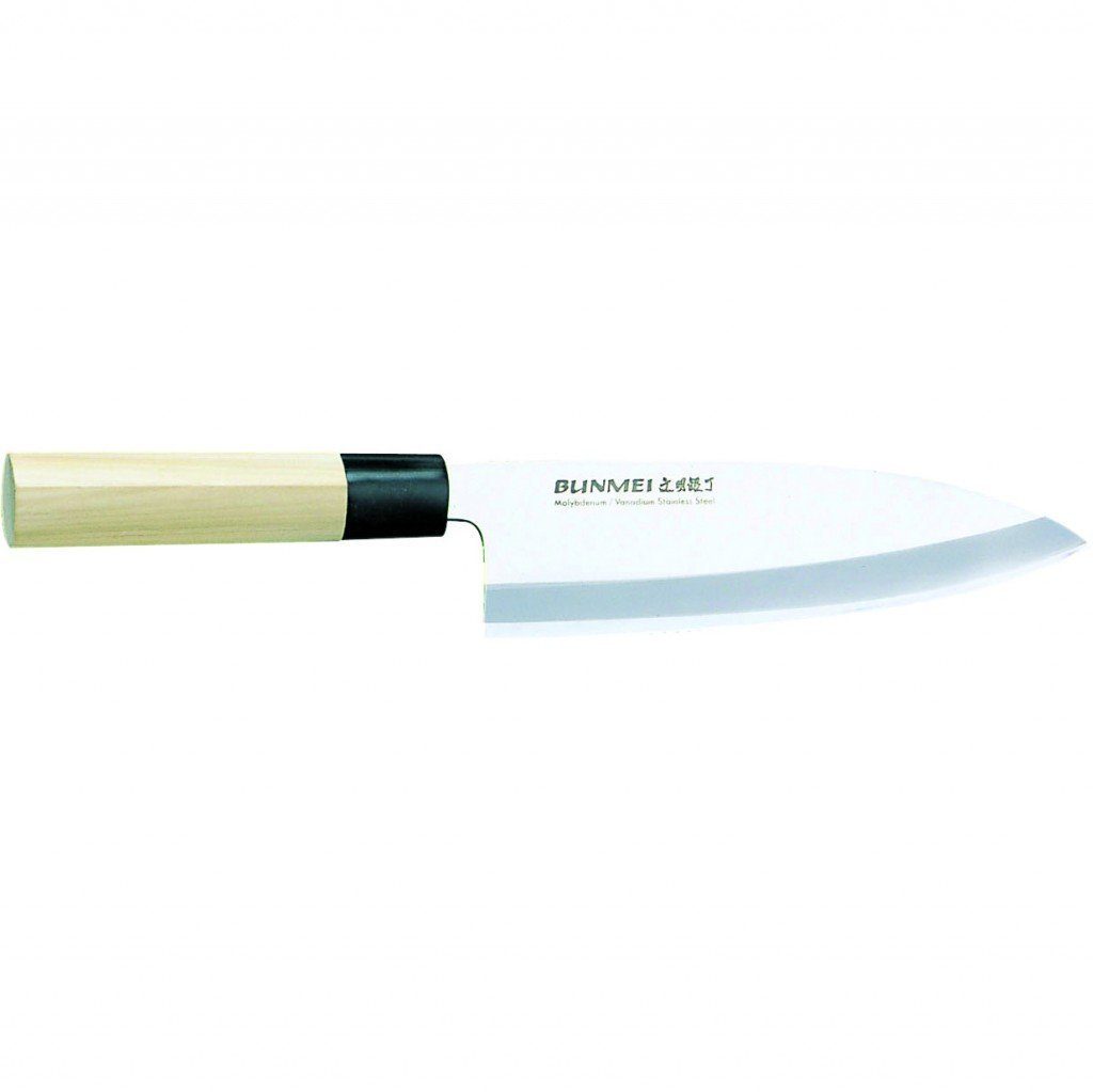 Das 1801-195 Global Bunmei Deba hat eine 19,5 cm lange einseitig geschliffene Klinge. Diese hat die typische Deba-Klingenform.