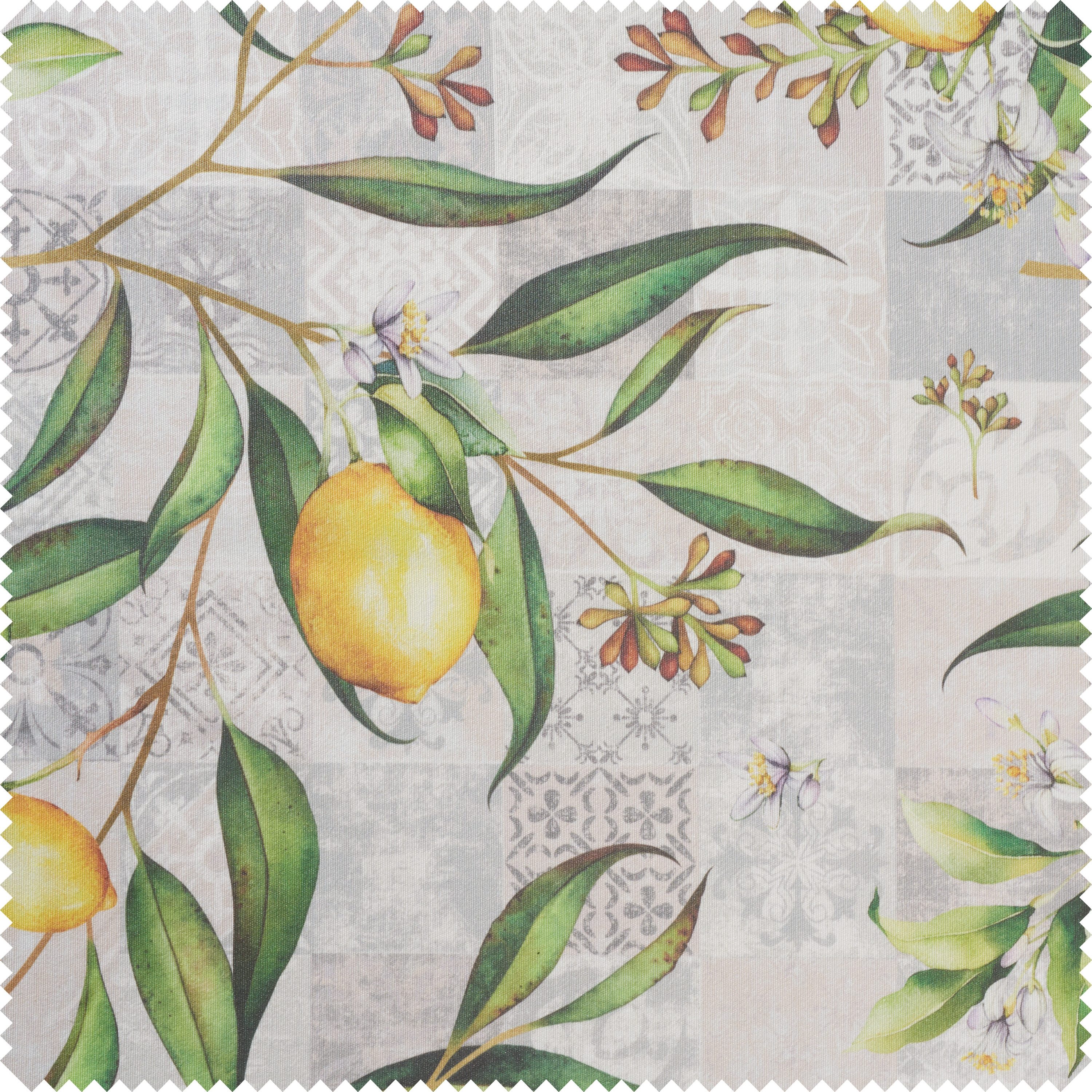 Mit dem Baumwoll-Stoff 'Limonero', Acryl beschichtet, holst du dir mediterranes Flair und den Sommer nach Hause. Das Motiv zeigt Zitronen an kleinen Ästen mit grünen Blättern und ist perfekt für Tischdecken und Kissenhüllen im Garten geeignet oder natürlich für bunte Kosmetiktaschen, Lunchbags, Strandtaschen und mehr. Italienisches Ambiente und mediterranen Charme für deine neuen Nähprojekte. Der Stoff ist aber nicht nur schön anzusehen, sondern auch äußerst funktional. Dank der Acrylharzbeschichtung ist er wasser- und schmutzabweisend. Mit einer Breite von 140 cm und einem Gewicht von 215 g/m² bietet der Stoff vielfältige Möglichkeiten. Lass dich von dem mediterranen Charme des 'Limonero' verzaubern und bestelle jetzt die Meterware, um deine kreativen Ideen Wirklichkeit werden zu lassen.