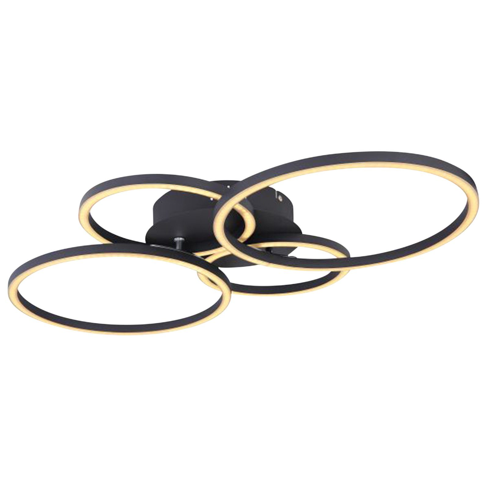 Die schwarz matte LED-Deckenleuchte (Ø der Ringe: 2x30 cm, 2x20,5 cm) zieht mit ihrem modernen, imposanten Design alle Blicke auf sich.