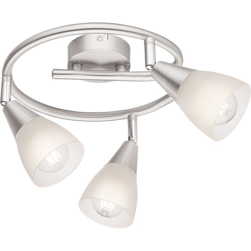 Der moderne nickel matte Deckenstrahler Tadeus I punktet durch sein Design und dem satinierten Glas. An der e-Form (Ø29cm) sind drei wunderschöne Spots angebrachten die über jeweils einer E14 Fassung verfügen. Somit können die Leuchtmittel und damit auch die Lichtfarbe und Lichtstärke von Ihnen bestimmt werden (max.40W). Aufgrund ihrer Stromersparnis und Langlebigkeit empfehlen wir LED-Lampen und mit weiteren Lampen der gleichen Modellreihe können Sie das Bild in Ihrem Wohnbereich komplettieren.