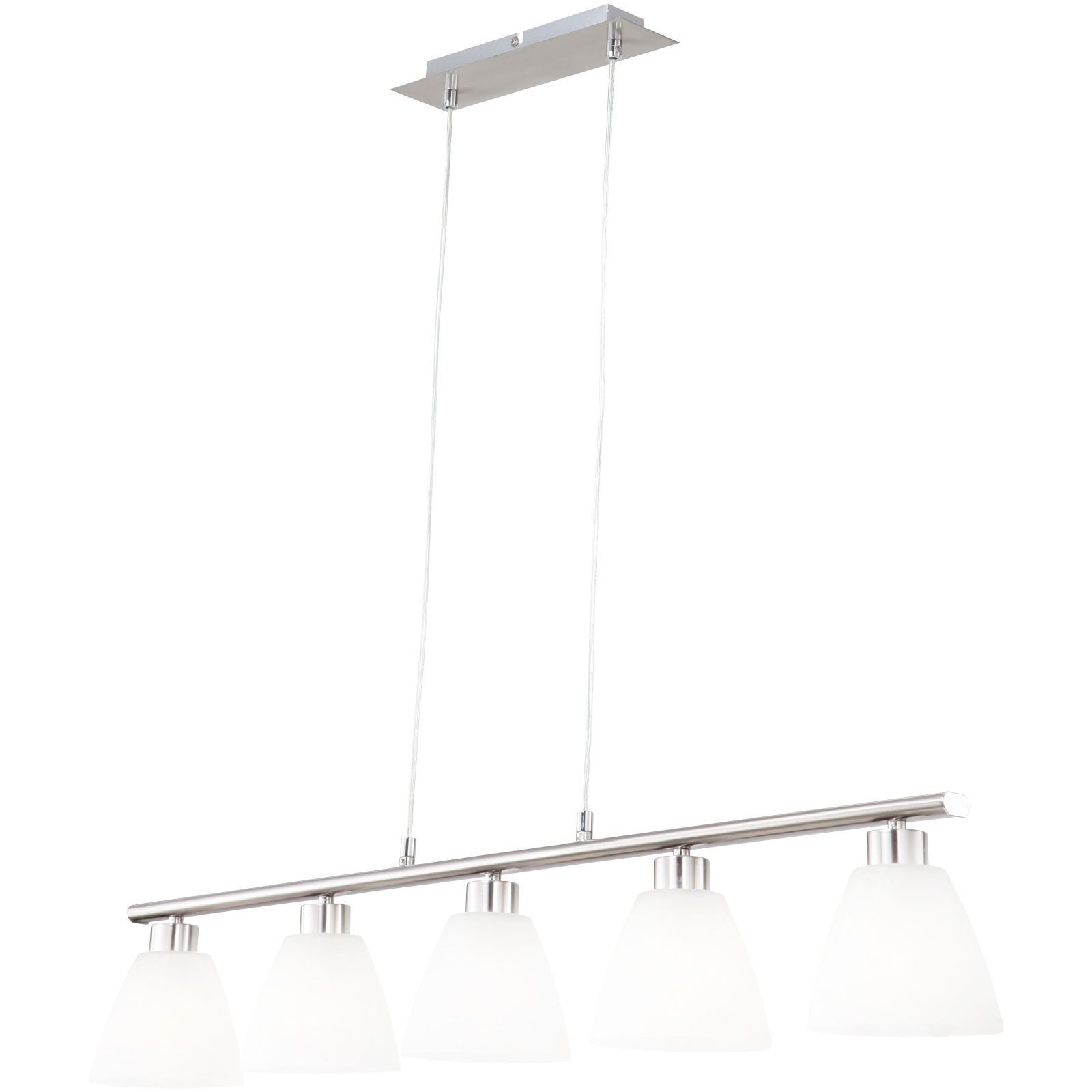 An dem geraden Balken sind fünf Gläser in weißer Alabasteroptik angeordnet, die mit fünf E14-Fassungen versehen sind, welche Ihnen die freie Leuchtmittelwahl ermöglichen (max.40W). Wir empfehlen LED-Lampen aufgrund ihrer Langlebigkeit und Stromersparnis.