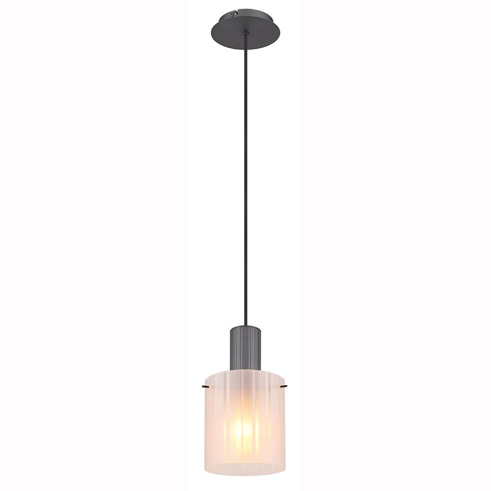Die runde Hängeleuchte aus dunkelgrauem Metall ist die perfekte Ergänzung für eine moderne und stilvolle Einrichtung. Mit einem runden zylindrischen Glas in satiniertem Finish und Rillen versehen, bietet sie eine angenehme und blendfreie Beleuchtung. Der Glas-Schirm hat einen Durchmesser von 180mm und ist für eine E27 Glühbirne mit maximal 40W Leistung ausgelegt. Der Korpus der Hängeleuchte besteht aus robustem Metall in dunkelgrauer Farbe, was für eine edle Optik sorgt.Mit dieser Hängeleuchte setzen Sie ein modernes und elegantes Lichtakzent in Ihrem Zuhause.