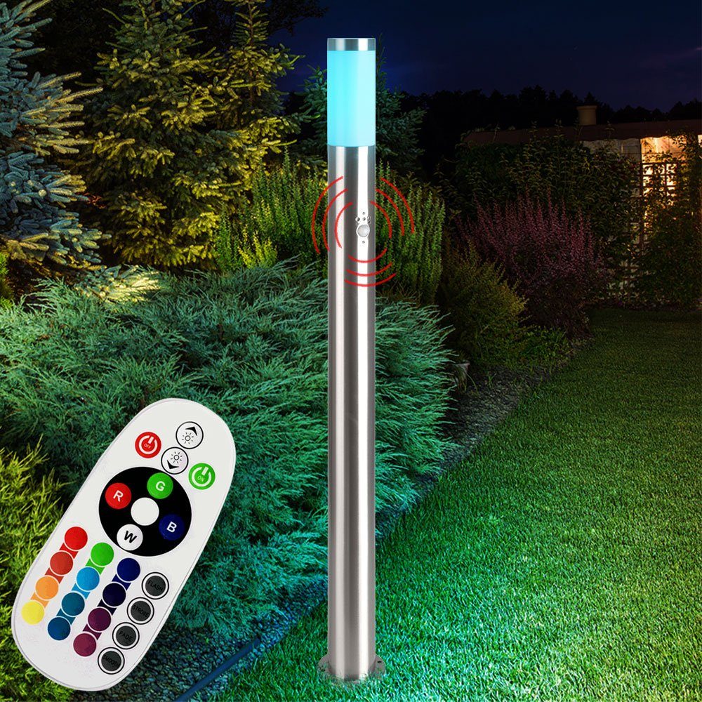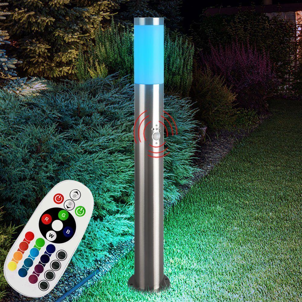 Stehleuchten aus Edelstahl für den Außenbereich.