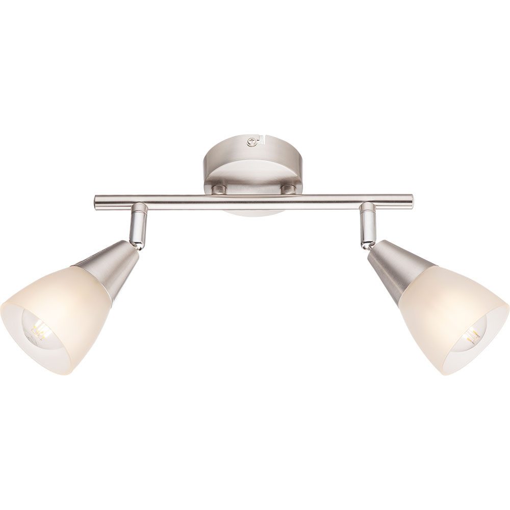 Der moderne Deckenstrahler Tadeus I punktet mit seinem Design und den tollen Materialien. Die zwei verstellbaren, an einem geraden festen nickel matten Arm angebrachten Spots aus satiniertem Glas, sind mit jeweils einer E24 Fassung ausgestattet. Das passende Leuchtmittel kann dadurch von Ihnen frei bestimmt werden (max.40W). Aufgrund ihrer Stromersparnis und Langlebigkeit empfehlen wir LED-Lampen und mit weiteren Lampen der gleichen Modellreihe können Sie das Bild in Ihrem Wohnbereich komplettieren.