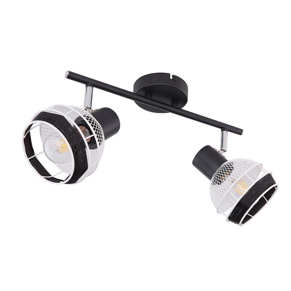 Die zwei, sich an einer geraden Schiene befindenden Strahler überzeugen mit dem Design der Lampenschirme, welche Metallgeflechte sind und vorne mit einen schwarzen Hanfseil umspielt werden. Durch die freie Wahl des Leuchtmittels (2xE27/max. 40W) können Sie selbst über Lichtstärke und Lichtfarbe dieser Innenlampe bestimmen. Aufgrund ihrer Langlebigkeit und Stromersparnis empfehlen wir LED Leuchtmittel. Diese Spotlightlampe ist für Schlaf-, Flur-, Wohn- und Esszimmer geeignet.