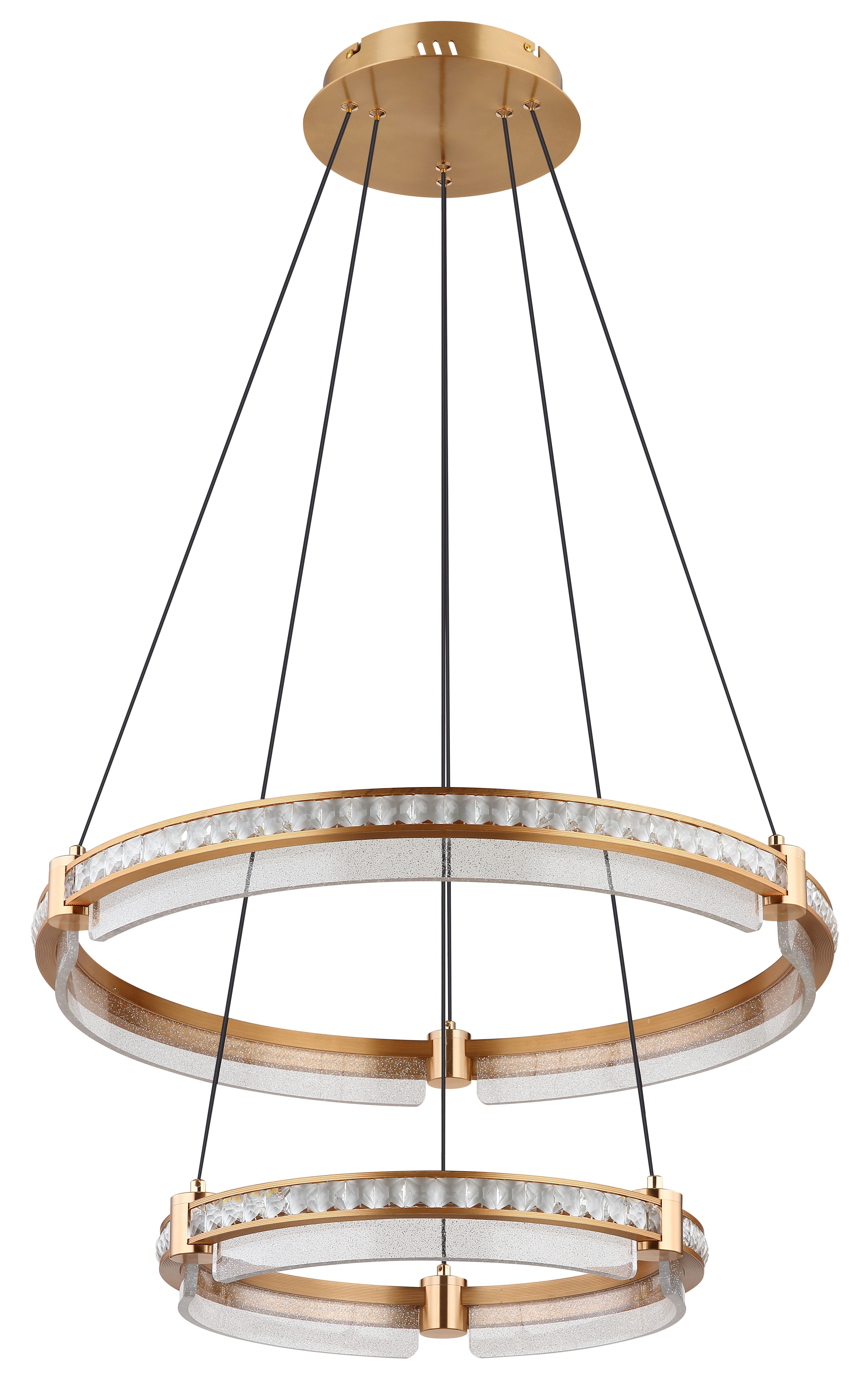 Die runde Hängeleuchte BLONDIE ist ein absolutes Highlight für jeden Raum. Mit einem einzigartigen Design und hochwertigen Materialien verleiht sie Ihrem Zuhause einen Hauch von Luxus und Eleganz. Die BLONDIE besteht aus zwei ringförmigen Elementen, die in Goldfarben aus gebürstetem Aluminium gefertigt sind. Der Schirm besteht aus klaren K5 Kristallen und klarem Acryl, was ein faszinierendes Spiel aus Licht und Schatten erzeugt. Mit der mitgelieferten Fernbedienung können Sie die Beleuchtung ganz bequem steuern. Die Hängeleuchte ist dimmbar, sodass Sie die Helligkeit individuell anpassen können. Außerdem haben Sie die Möglichkeit, Ihre Lieblingsfarbe zu fixieren und die integrierte Memoryfunktion speichert Ihre Einstellungen. Die BLONDIE Hängeleuchte hat einen Durchmesser von 600mm und erzeugt einen Lumen Output von beeindruckenden 4143. Dank der einstellbaren CCT von 2700K bis 6000K können Sie die Lichtfarbe nach Belieben wählen. Mit der BLONDIE Hängeleuchte setzen Sie auf ein außergewöhnliches Design und eine hochwertige Verarbeitung. Schaffen Sie eine luxuriöse Atmosphäre in Ihrem Zuhause und genießen Sie die blendende Pracht, die diese Leuchte ausstrahlt.