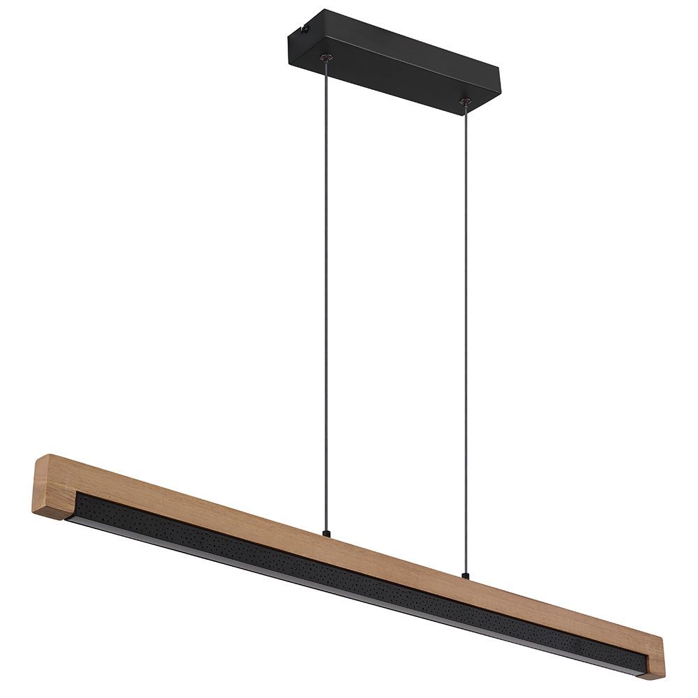 Der schwarzmatt lackierte Metallkorpus in Kombination mit den dunkelbraunen Holzbalken verleiht der Leuchte einen modernen und zugleich gemütlichen Charme. Der Aluminiumschirm ist ebenfalls schwarz matt und mit opalem Kunststoff ausgestattet, der für eine angenehme und blendfreie Lichtverteilung sorgt. Mit den Maßen von 85 cm Длина und 7 cm Breite ist diese Hängeleuchte perfekt für den Einsatz über Esstischen oder in Fluren geeignet.