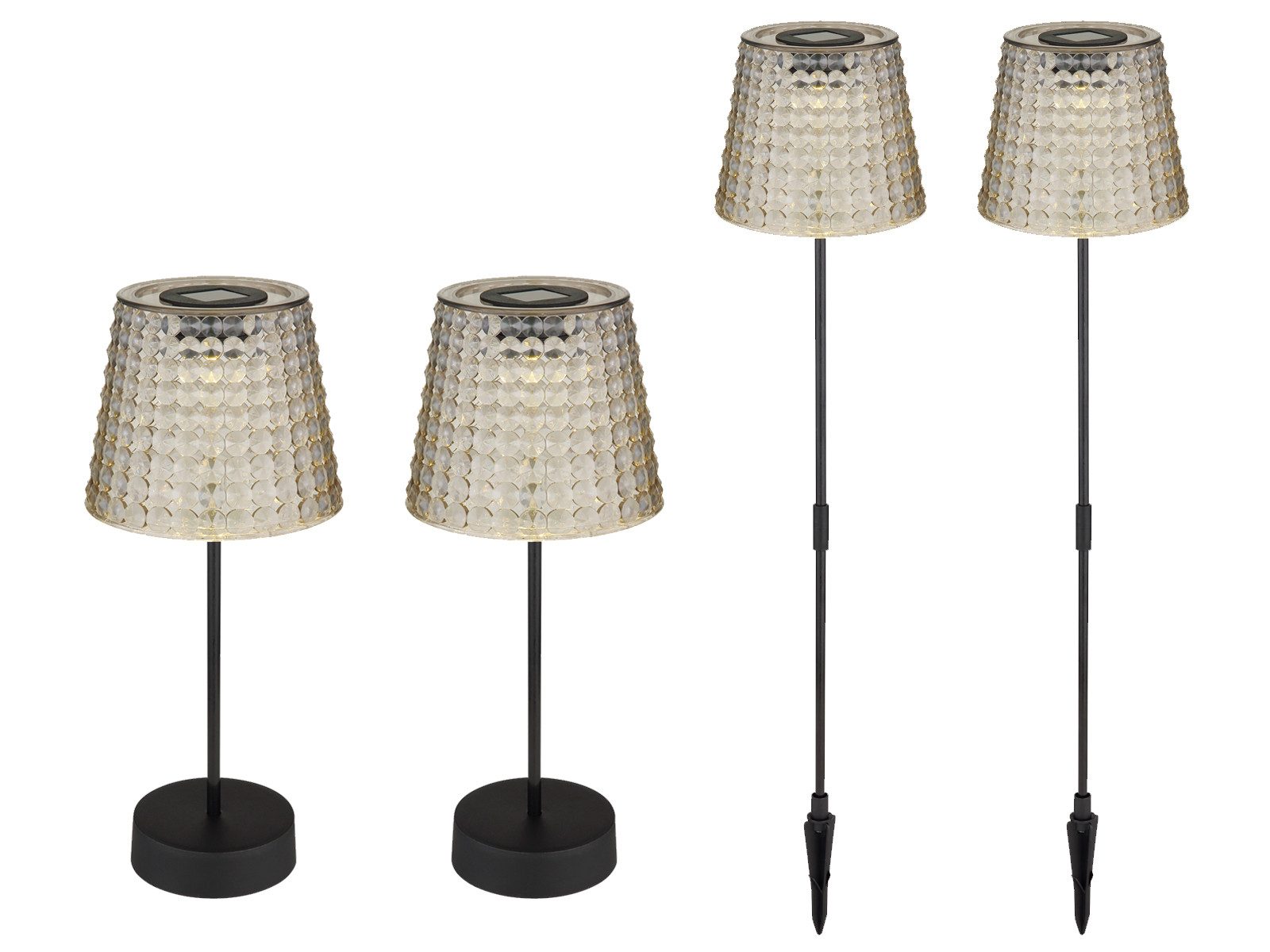 Wissenswertes | In diesem Set sind vier Solarleuchten enthalten, zwei Solar Tischleuchten sowie zwei Solar Erdspießleuchten. |