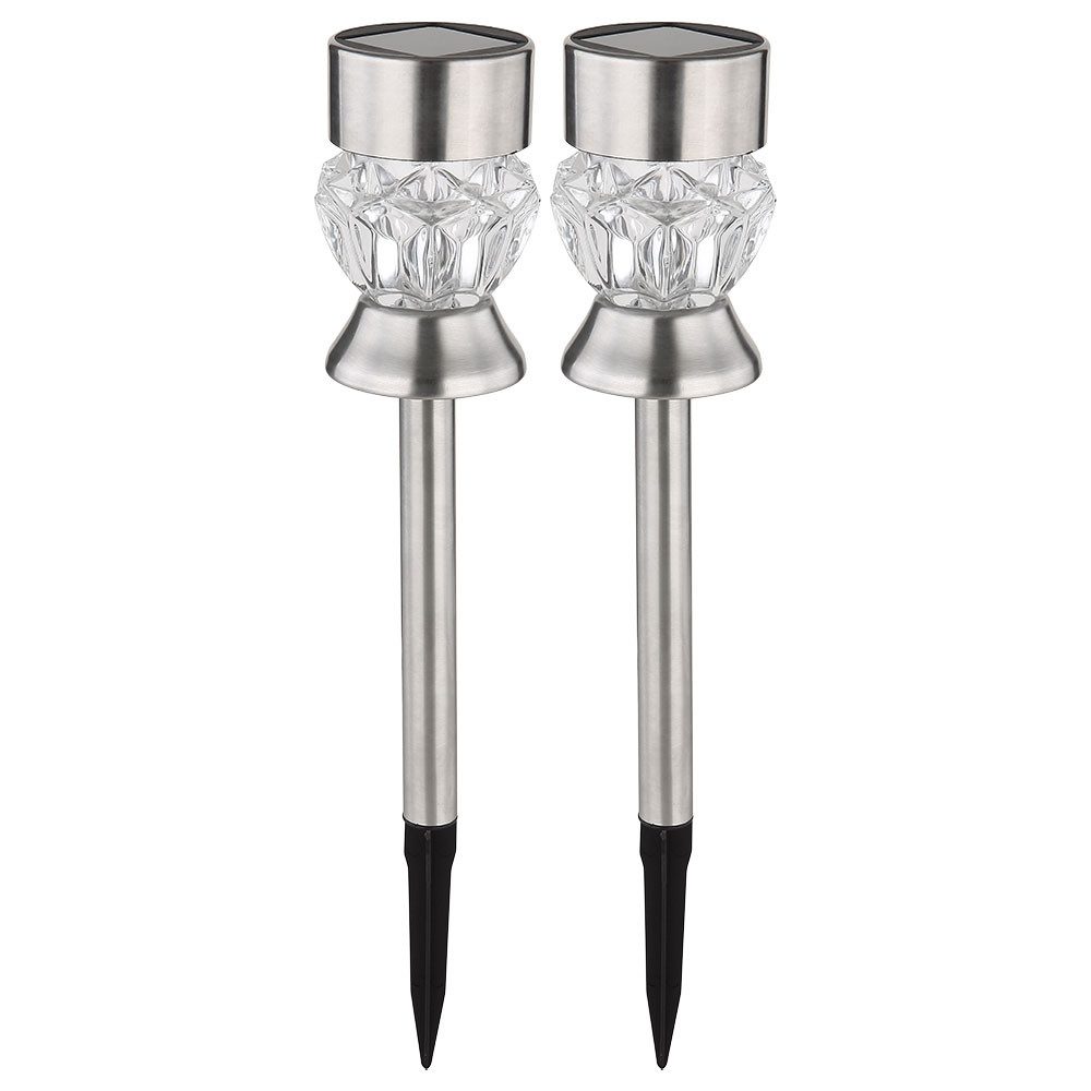 Der Akku (AA 200mAh 1.2V) ist ebenso im Lieferumfang enthalten. Dieses Set enthält 2 Stück der Solarleuchte. Die Leuchte kann sowohl aufgestellt als auch mit Erdspitz verwendet werden.