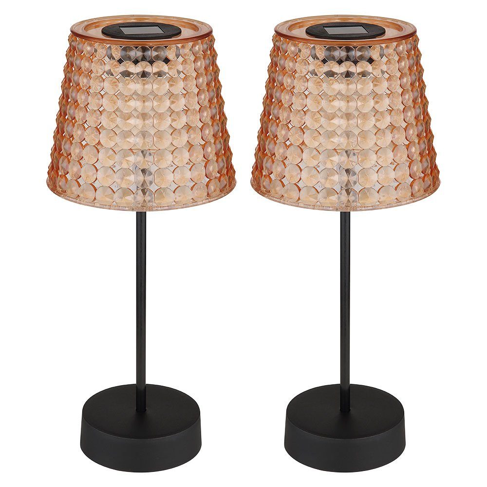 Die Leuchte besteht aus schwarz mattem Kunststoff und einem faszinierenden amberfarbenem Kunststoff, der das Licht sanft filtert. Der Schirm in Kristalloptik ist einzigartig und verleiht der Leuchte eine besondere Note. Mit einem Durchmesser von 12,5 cm und einer Höhe von 29 cm ist diese Solarleuchte ein echter Blickfang in jedem Raum. Der Schiebeschalter ermöglicht eine einfache Bedienung.