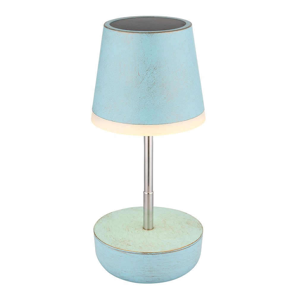 Die SOLARLEUCHTE KUNSTSTOFF BLAU ist eine elegante Tischleuchte mit Teleskop, die Ihrem Außenbereich ein modernes Flair verleiht. Der runde Kunststoff-Korpus in antikem Blau und Edelstahl kombiniert sich mit einem blauen Kunststoffschirm, um ein sanftes, warmes Licht zu erzeugen. Mit 10 LEDs und einer Lichttemperatur von 3000 K sorgt diese Leuchte für eine angenehme Beleuchtung. Der Druckschalter ermöglicht eine einfache Bedienung. Die IP44 Schutzklasse gewährleistet, dass diese Solarleuchte wetterfest und für den Außeneinsatz geeignet ist.