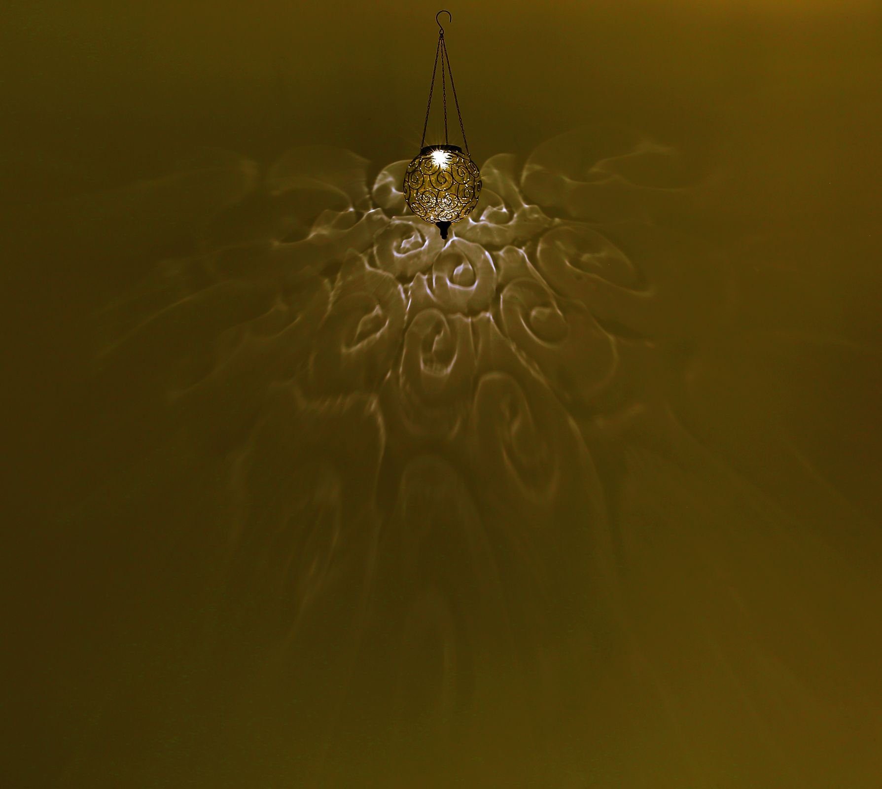 Die Lampe besteht aus einer Kugel, welche mit mit wunderschönen Ornamenten überzogen ist und die Leuchtmittel erstrahlen in einem hellweißem Licht von 6000 Kelvin.