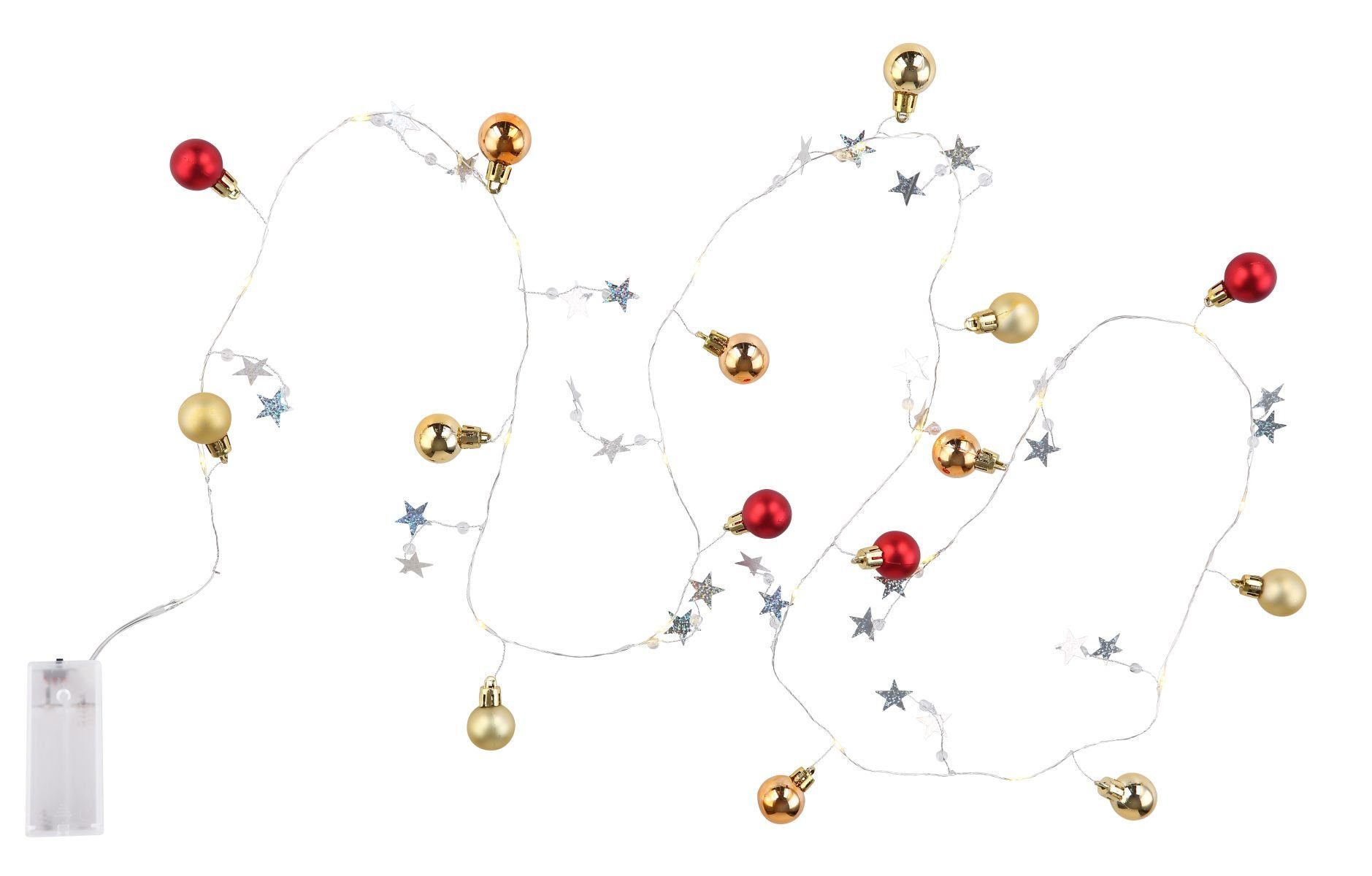 Diese Lichterkette ist ein richtiger Hingucker. Auf dem 220 cm langen Kunststoffkabel sind 20 kleine Kugeln jeweils im Abstand von 10 cm angebracht.