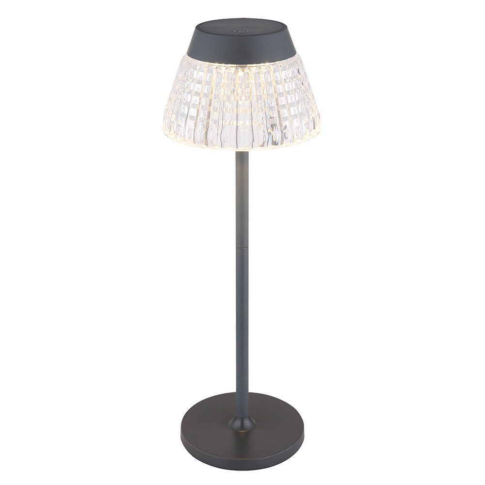 Die LORA Tischleuchte präsentiert sich in einem eleganten Design, das von einem runden Korpus aus anthrazitmattem Metall bestimmt wird. Der Korpus wird von einem Schirm mit Kristalldekor in klarem Acryl und anthrazitmatten Kunststoff abgerundet. Ein weiteres Highlight ist die moderne Touch-Funktionalität, die es Ihnen ermöglicht, die Leuchte mit einem Touch auf und abzuschalten. Ein Touch-Dimmer ermöglicht es Ihnen, die Helligkeit anzupassen. Die Schirmabmessung beträgt ø 135 mm und gibt dem Ganzen eine elegante und kompakte Form. Die LORA Tischleuchte ist eine ideale Wahl für alle, die nach einer stilvollen und praktischen Lösung für ihre Beleuchtung suchen.
