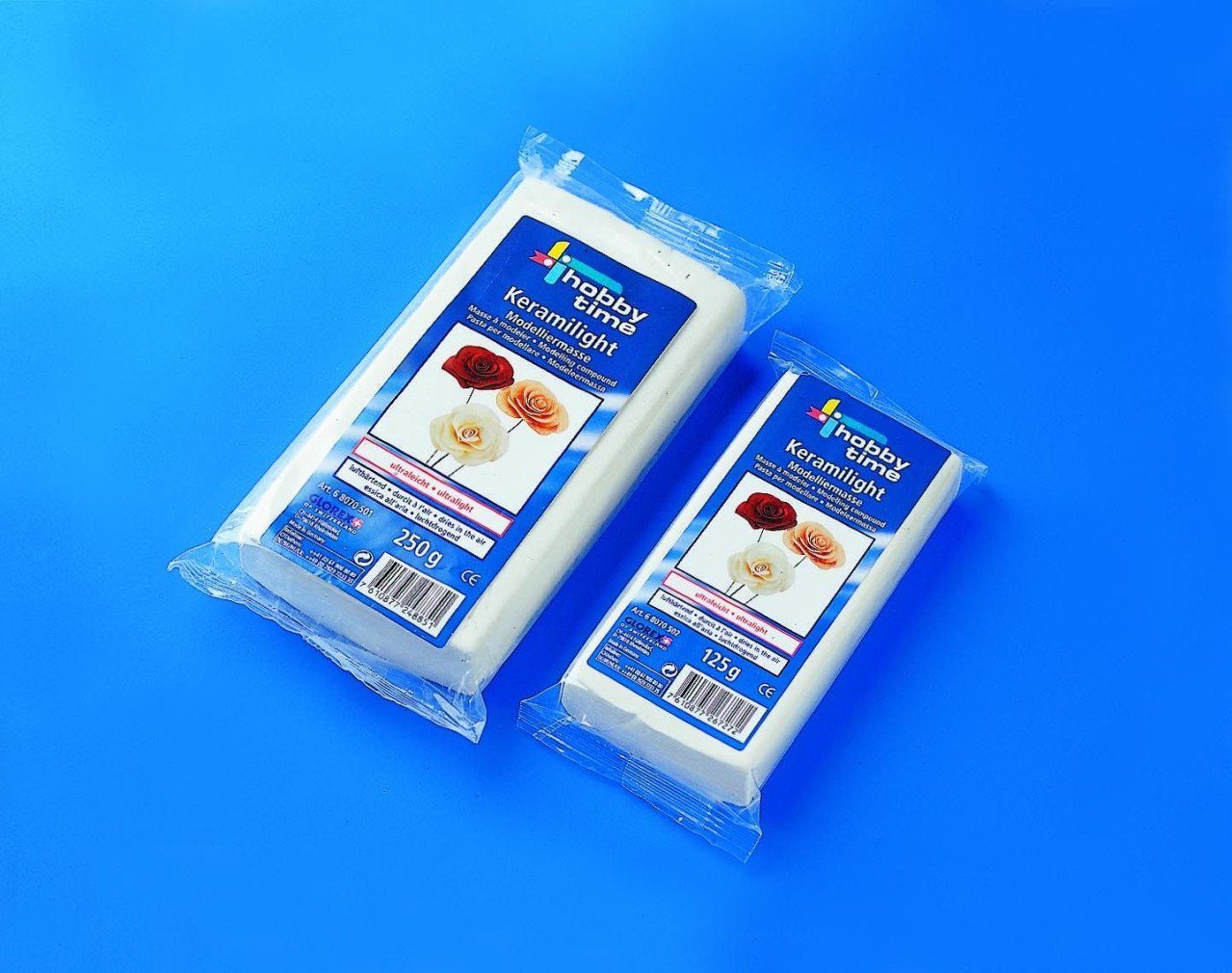 Keramilight ist eine ultraleichte, lufttrocknende Modelliermasse. Ausgehärtet ist Keramilight extrem leicht und hart. Die fertigen Modelle können geschliffen, gebohrt und bemalt werden. Besonders gut eignet sich die Modelliermasse für das herstellen von filigranen Teilen, wie Blumen und Mobiles sowie 3D-Technik bei der Serviettentechnik.