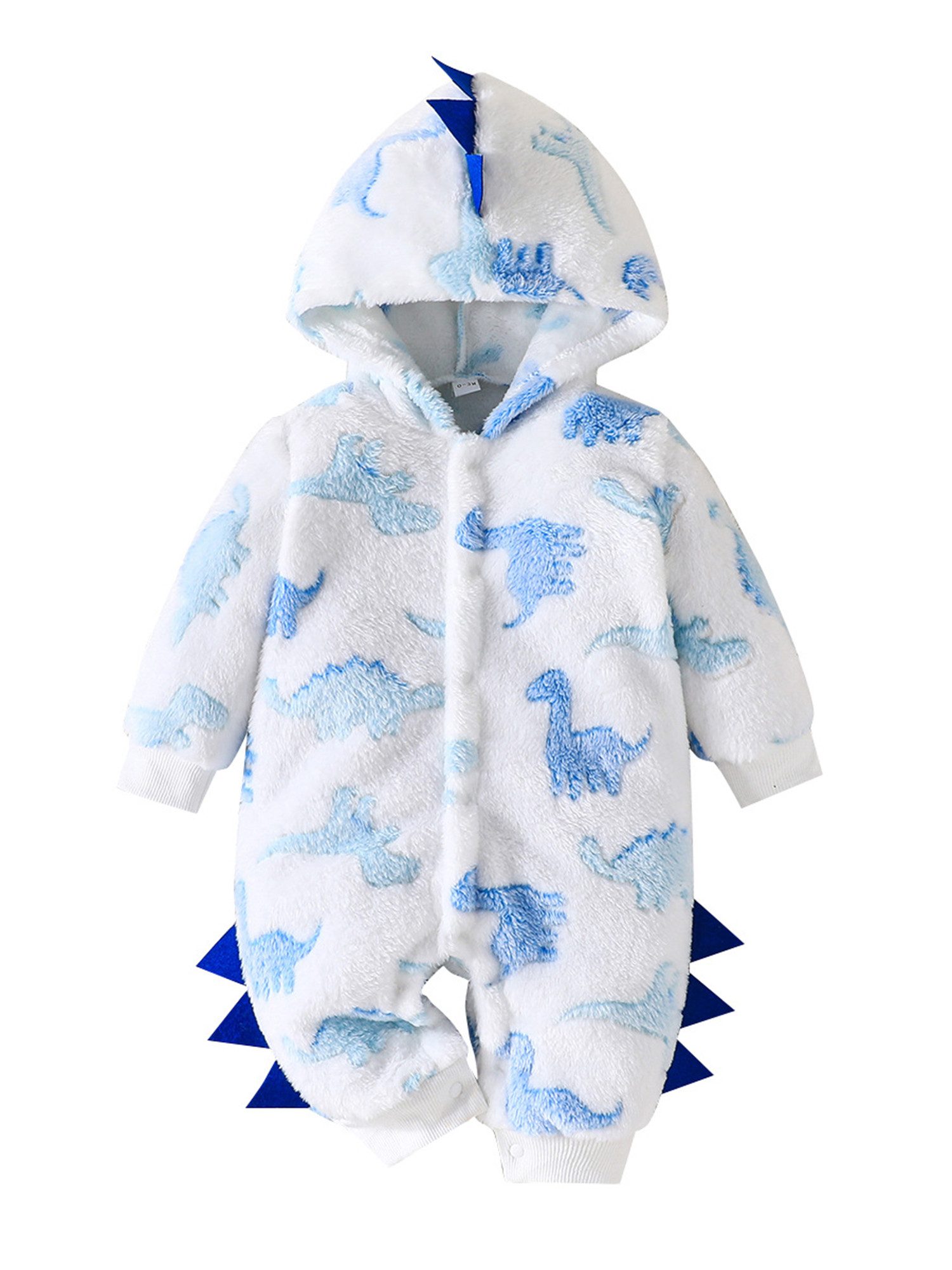 Hergestellt aus weichem und warmem Flanellstoff, kombiniert mit Dinosaurier-Cartoon-Drucken und niedlichen Dekorationen, sorgt es nicht nur für den Komfort des Babys, sondern lässt das Baby auch jeden Moment lebendiger und niedlicher aussehen.